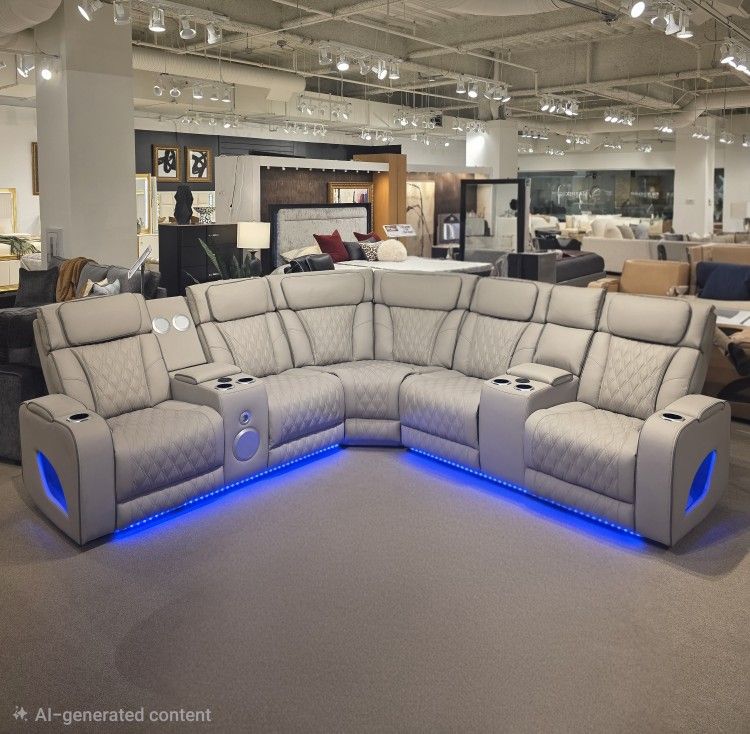 New 3 pc Modern Sectional from $3398 TODAY OFFER UP SPECIAL $$2699! Includes RAF Power Recliner Loveseat With Center Console, Corner Wedge and LAF Power Recliner Loveseat With Center Console. Available in 4 colors, White, Black, Gray and Caramel. Overall Dimensions: 96" x 121" x 38"H. FINANCE AVAILABLE FOR GOOD CREDIT, NO CREDIT OR BAD CREDIT! NO CREDIT NEED IT! This beautiful Sectional in Ice stands out with its pristine 'Ice' colored premium faux leather upholstery, offering a sleek look and easy maintenance. Whether you're entertaining guests, enjoying a family movie night, or simply unwinding after a long day, this sectional provides the perfect foundation for relaxation and sophisticated living. Features: • Power Reclining Mechanisms: Both the Left Arm Facing (LAF) and Right Arm Facing (RAF) components feature effortless power reclining mechanisms, allowing you to find your perfect lounging position with the touch of a button. • Integrated LED Lighting: Ambient LED lights are integrated into the design, creating a contemporary ambiance and adding a touch of luxury to your living room. • Bluetooth Speakers: The built-in Bluetooth speakers allow you to seamlessly play your favorite music or enhance your movie-watching experience directly from your sectional. • Convenient USB Ports: Stay connected and keep your devices charged with accessible USB ports, perfect for phones, tablets, and other electronics. • Center Console: The Fortuner Sectional Wedge includes a practical center console, ideal for storing remotes, magazines, or other essentials, keeping your space tidy. • Modern Ice-Colored Upholstery: The premium faux leather in a crisp 'Ice' color offers a sleek, contemporary aesthetic that brightens any room and is easy to clean. • Sturdy Construction: Built with a robust wood and metal frame, ensuring exceptional structural integrity and long-lasting durability. • High-Density Foam Cushioning: Experience firm yet comfortable support with high-density foam cushions that retain their shape over time. CHECK MY OFFERS I HAVE MORE QUALITY FURNITURE IN SPECIAL OFFER!