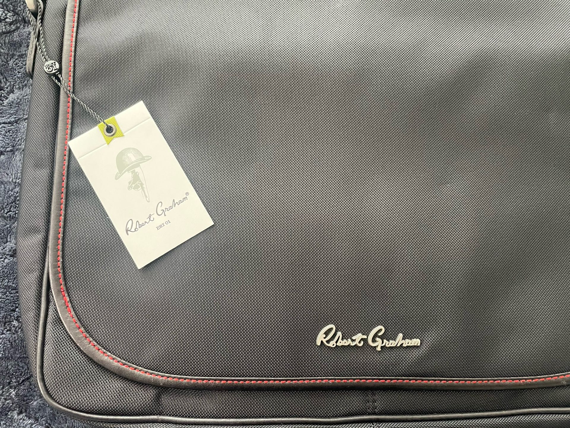 Brand new with tag, messenger bag. Black exterior with skulls on interior flap.