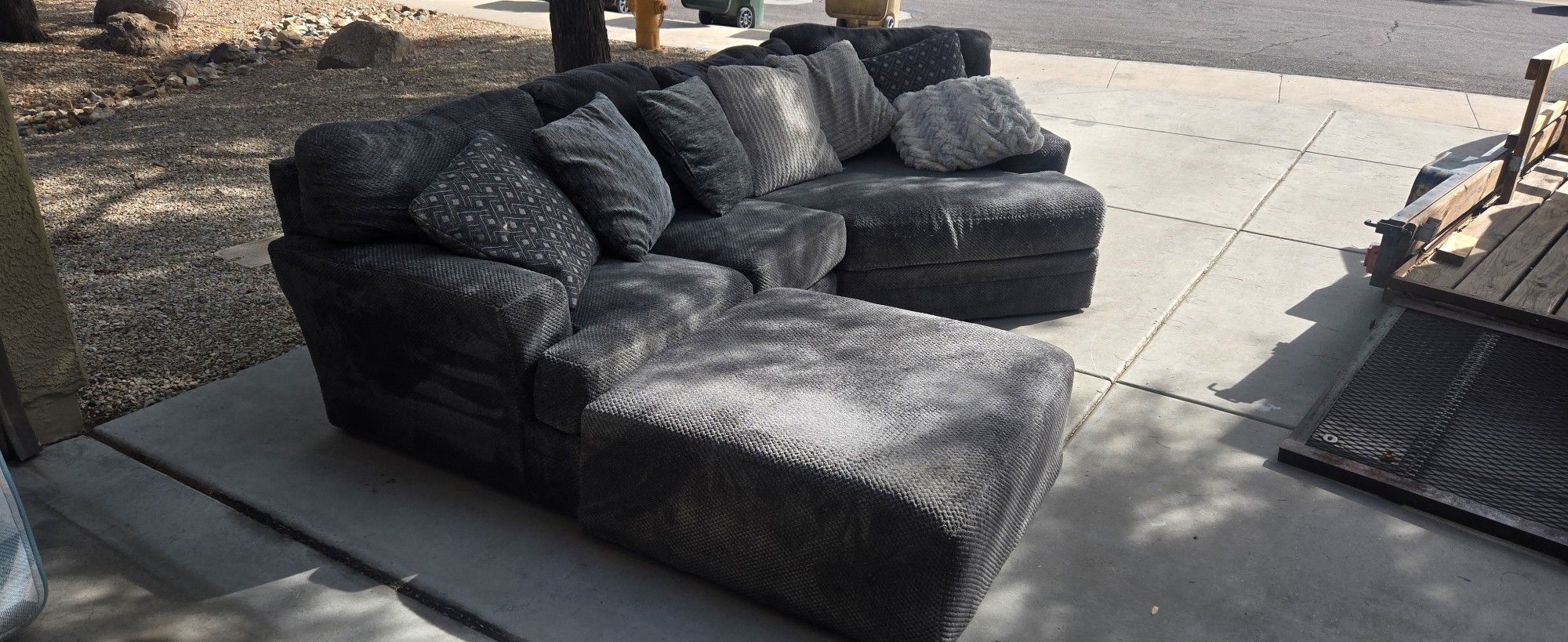 Comfy gray sectional sofa with chaise and pillows. 2 years old, very soft. Great condition. Moving and need sold. $300 obo.