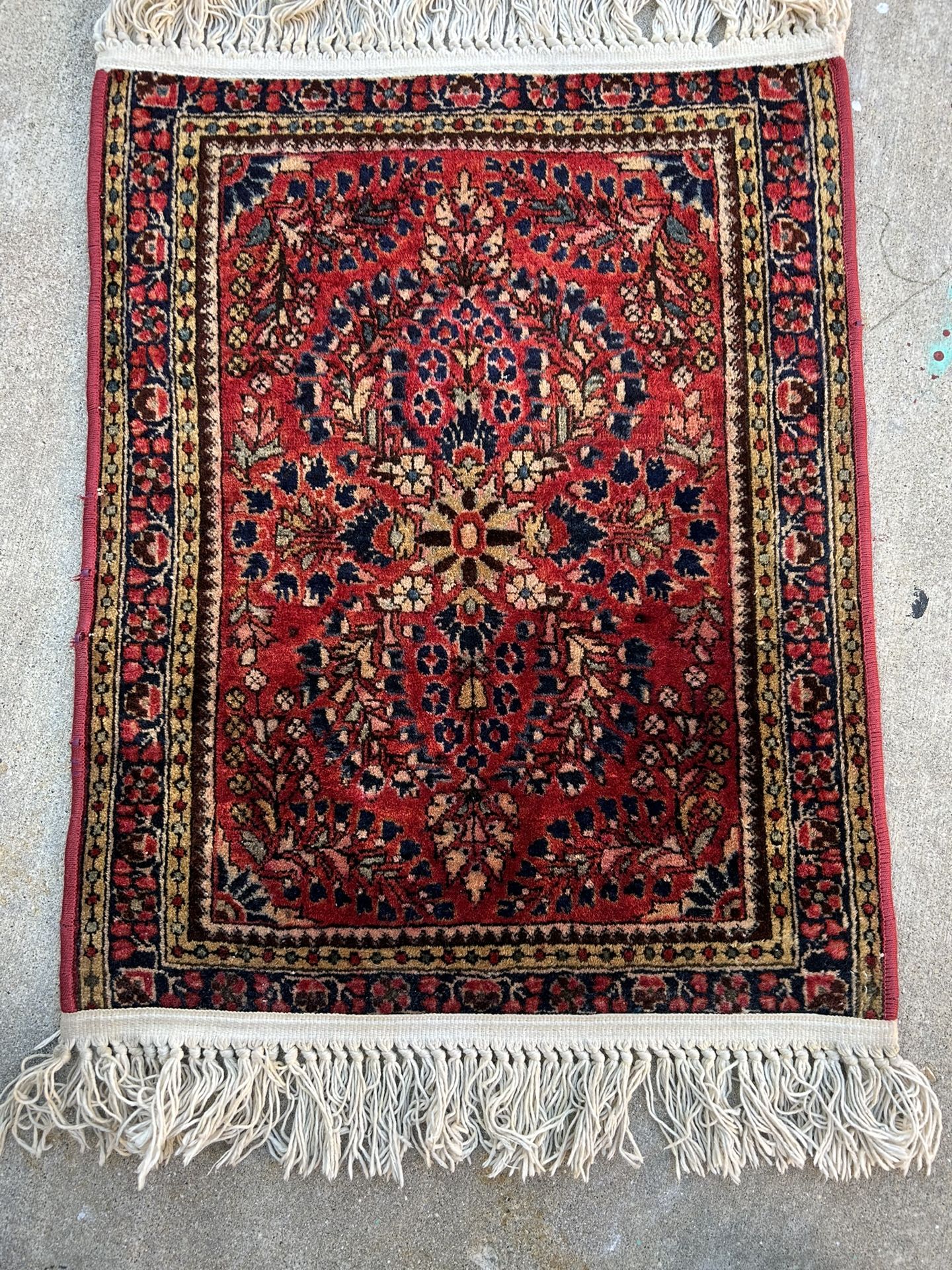 Persian vintage handmade Saroukh rug Good condition Beautiful colors. Tact fringes No damage 22 inches wide 28 inches long