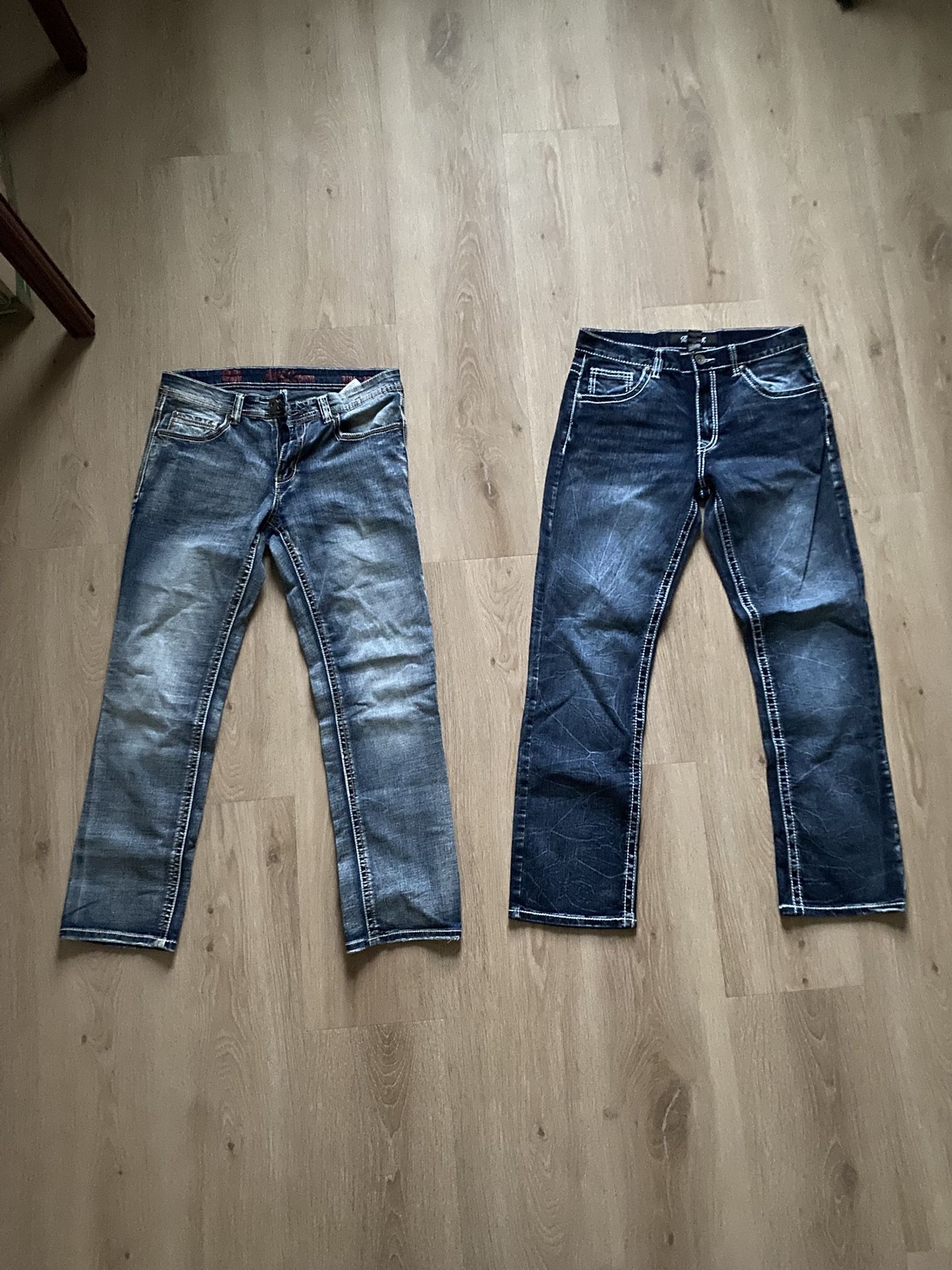 I bought these jeans a few months ago at Ross and I just don’t want them anymore. I’m selling them because they’re not my style. Wore them only a few times so they’re in great shape. Sizes: The pair on the left is a 31 by 30. The pair on the right a 32 by 32. PRICE: 1 for 10$ or both for 15$. PICKUP ONLY/MEET UP ONLY.