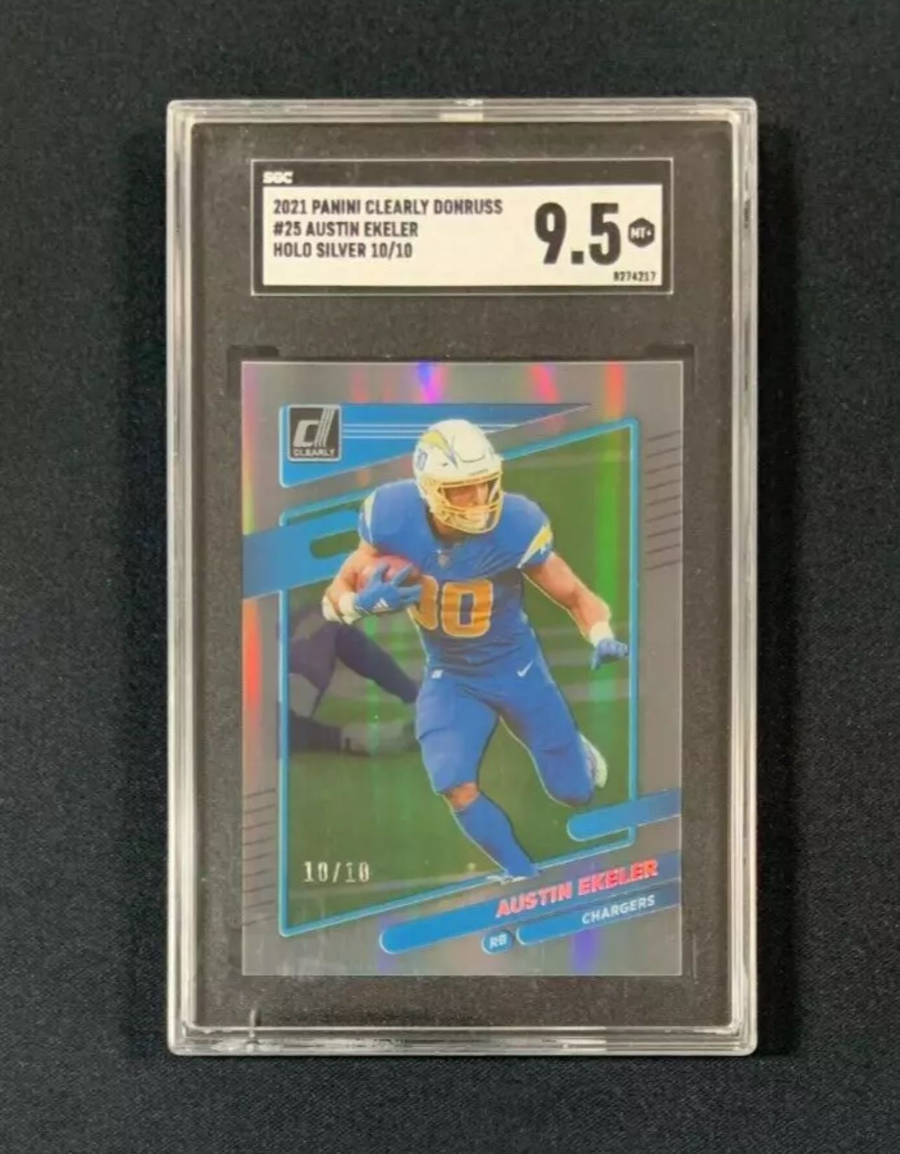 2021 Donruss Clearly Card #25 Austin Ekeler Silver Holo 10/10 Graded SGC 9.5
