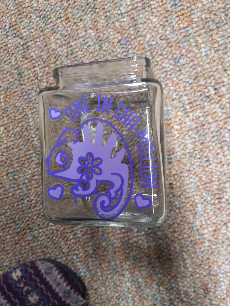 One in cha-million storage jar. Repurposed glass jar made for you and has a lid.