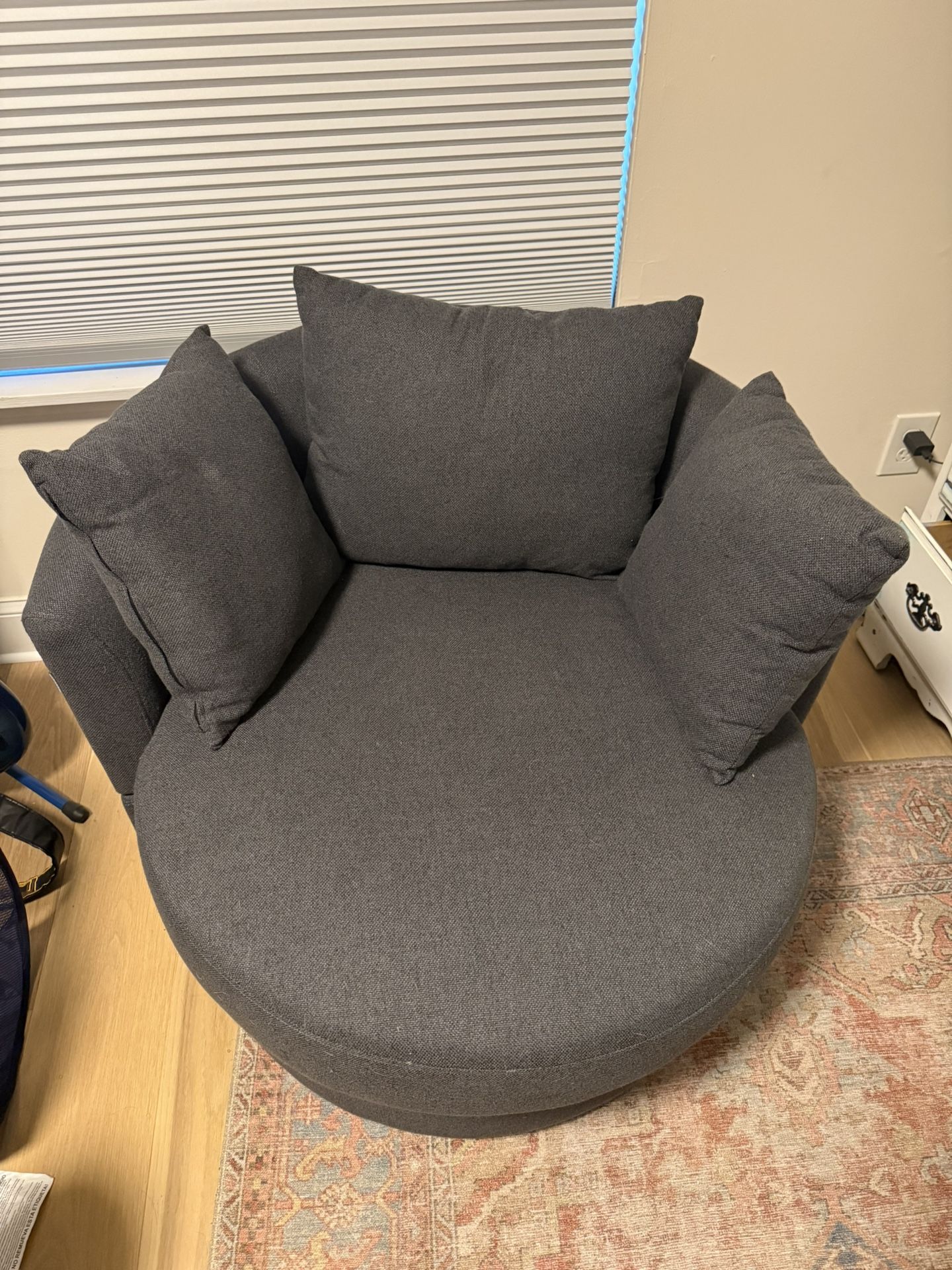 Charcoal Gray Swivel Barrel Chair