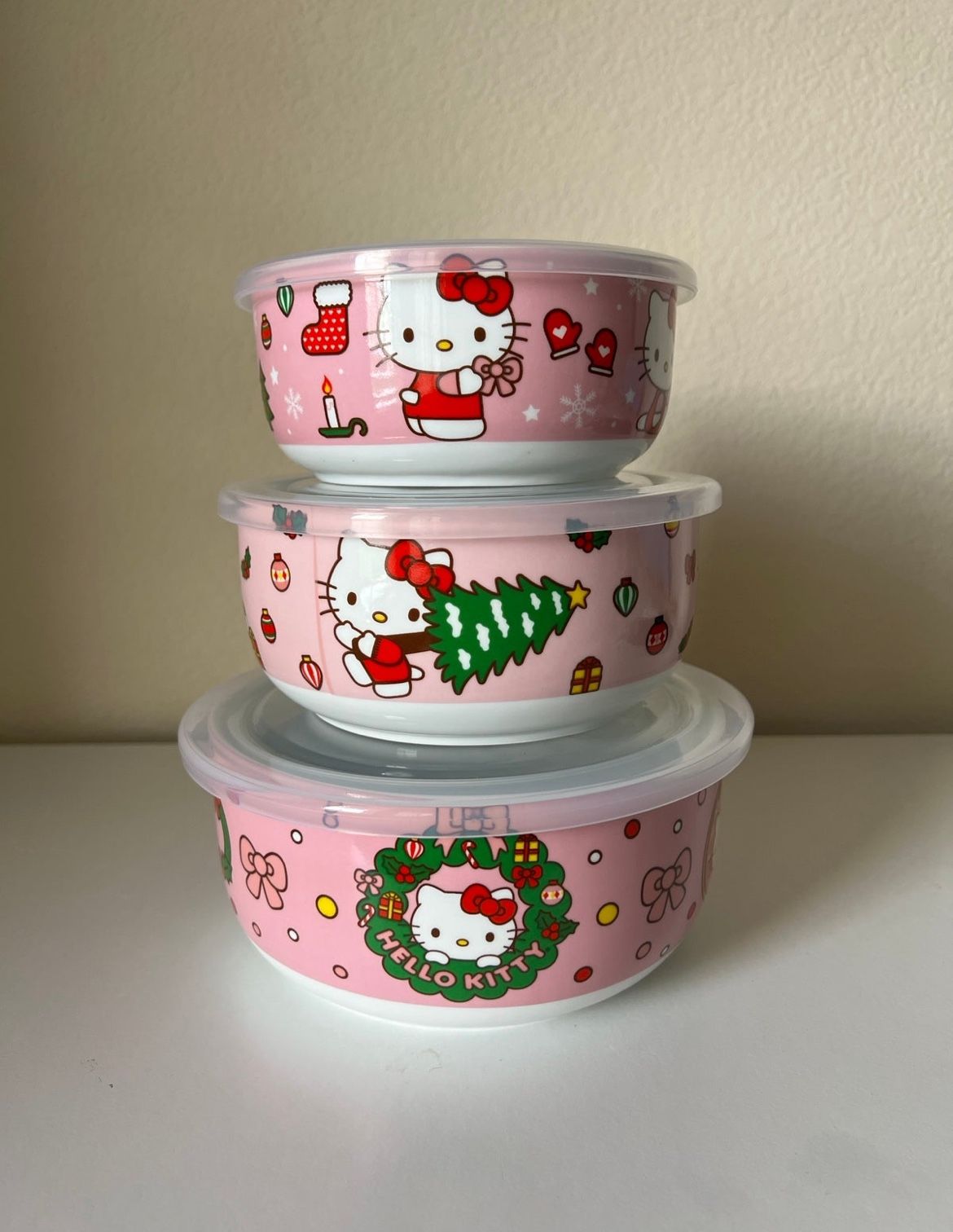 NEW Hello Kitty Pink Christmas Ceramic Tupperware set of 3 View all photos to see all the different images of Hello Kitty on each Tupperware