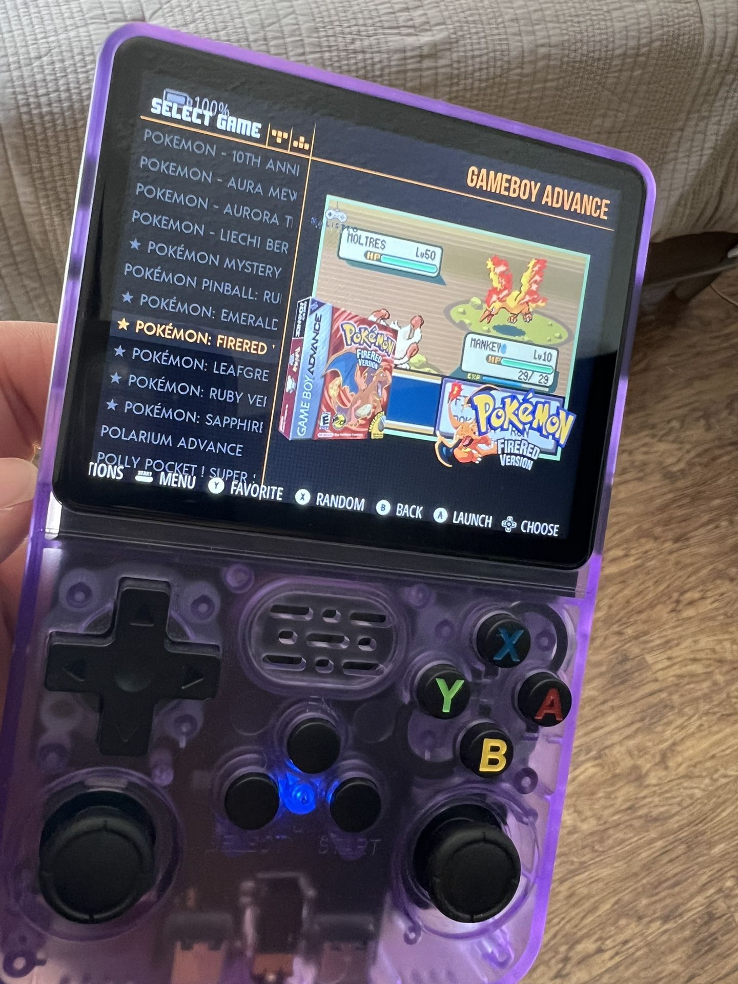 Bring the nostalgia with you anywhere you go! This R36 handheld retro console is preloaded with over 15,000 classic games from your favorite systems including Nintendo 64, PS1, Game Boy, NES, SNES, Sega Genesis, and more! Features: • 15,000+ games ready to play – no downloads needed • Multiple consoles in one (N64, PS1, GBA, NES, SNES, Sega, etc.) • Crisp 3.5” IPS display for clear, vibrant gameplay • Dual analog sticks + full button layout for maximum control • Transparent purple shell – stylish, nostalgic Game Boy vibe • Built-in battery with long play time (rechargeable via USB-C) • Save/load game states anytime • Lightweight, compact, and portable
