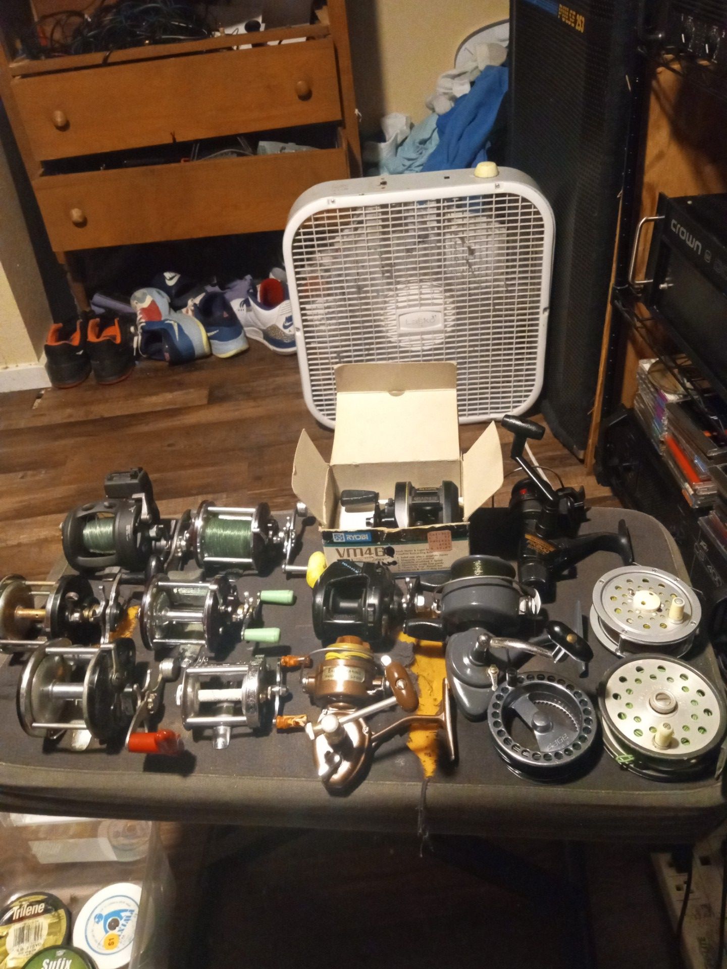 All reels work good there r salmon trout bottom fish trolling spincasting fly reels reels for everything 150 bucks have some nice rods to go with some of these reels that r not included but I will sell if interested