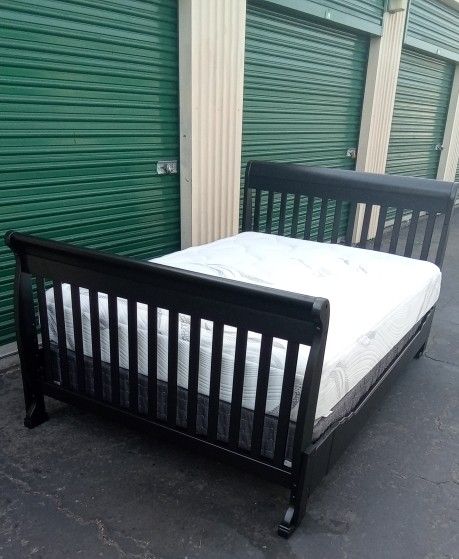 WOOD BLACK FULL BED FRAME FULL BOX SPRING FULL MEMORY FOAM MATTRESS
