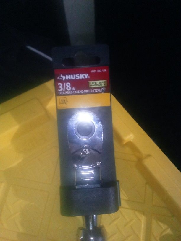 Brand new still in packaging HUSKY tools brand 3/8in Flex Head Extendable Ratchet. Located in San Bernardino I also have other tools available on my account and will give discounts for bundle deals