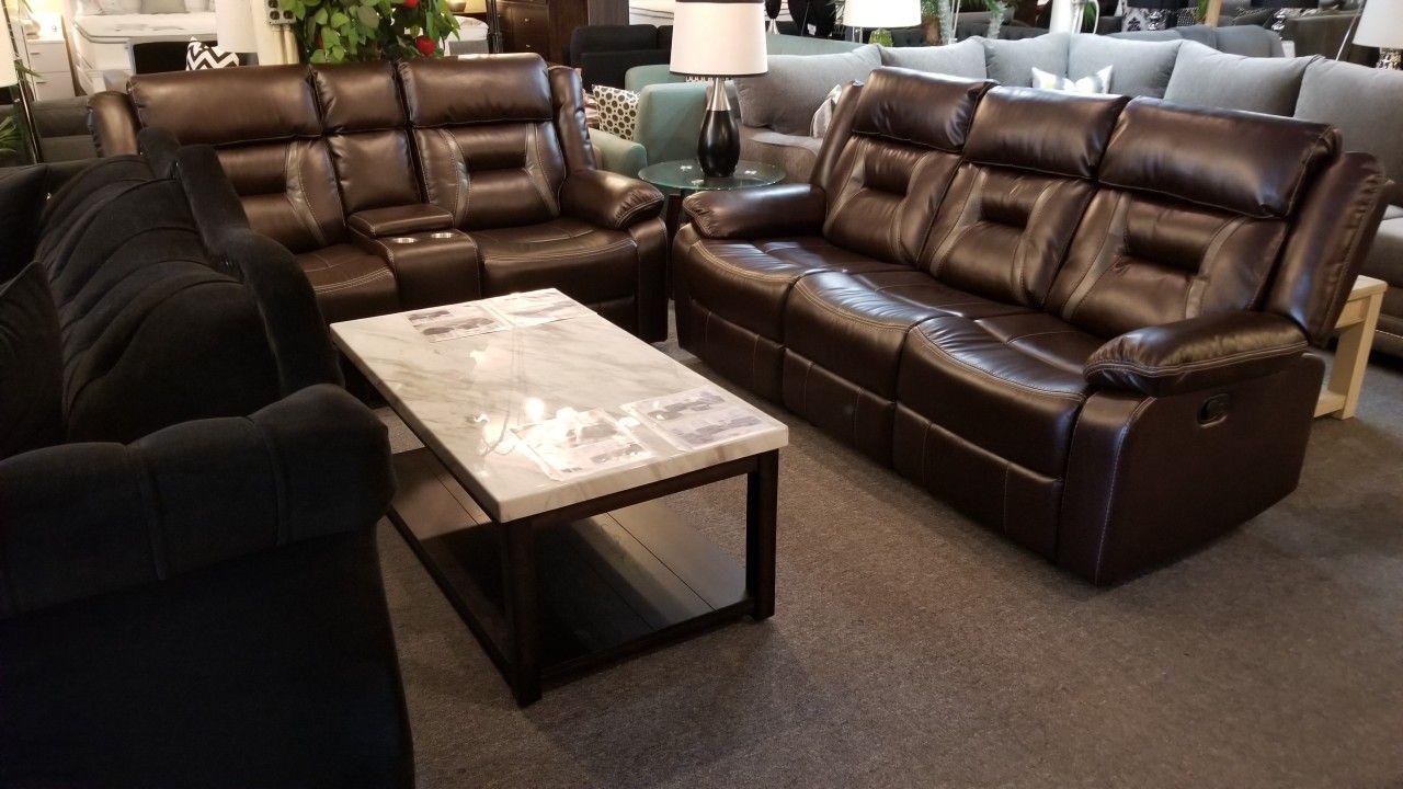 Brand New Brown Or Gray Gel Leather Manual Reclining Sofa + Loveseat 2PCs Set