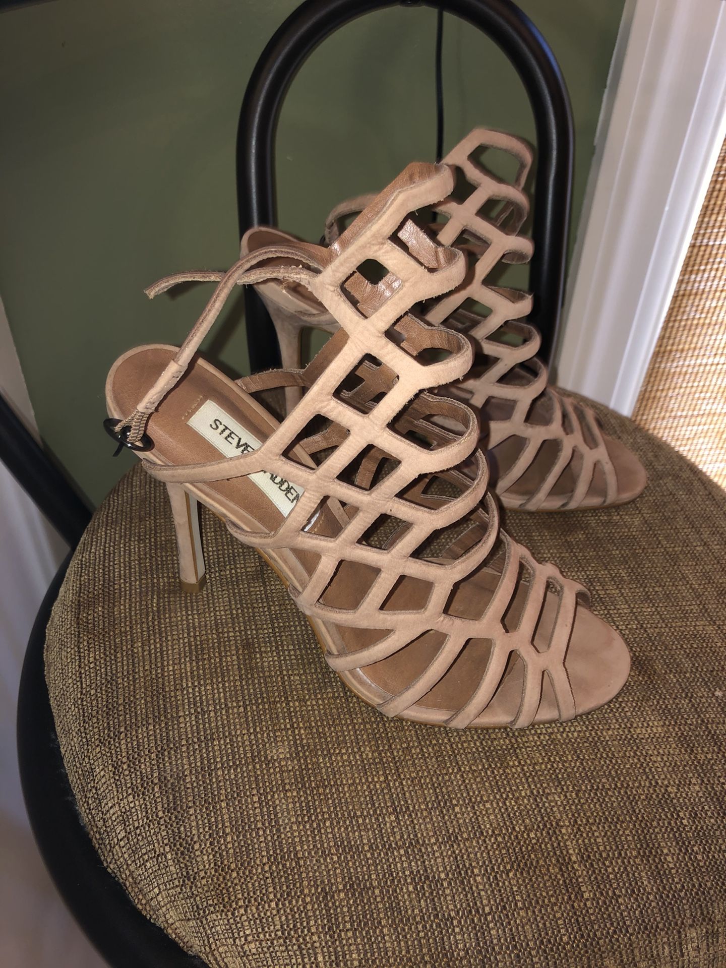 6.5 Steve Madden Tan suede sexy sling back sandal. Excellent condition!