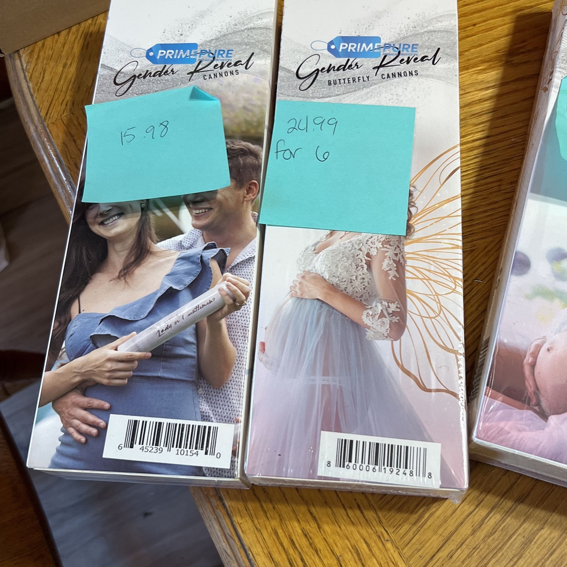 gender reveal cannons for a “girl”! 26 cannons. all sealed. we bought both colors and we’re having a boy. amazon would not take back. valued at 120. will take 100.00
