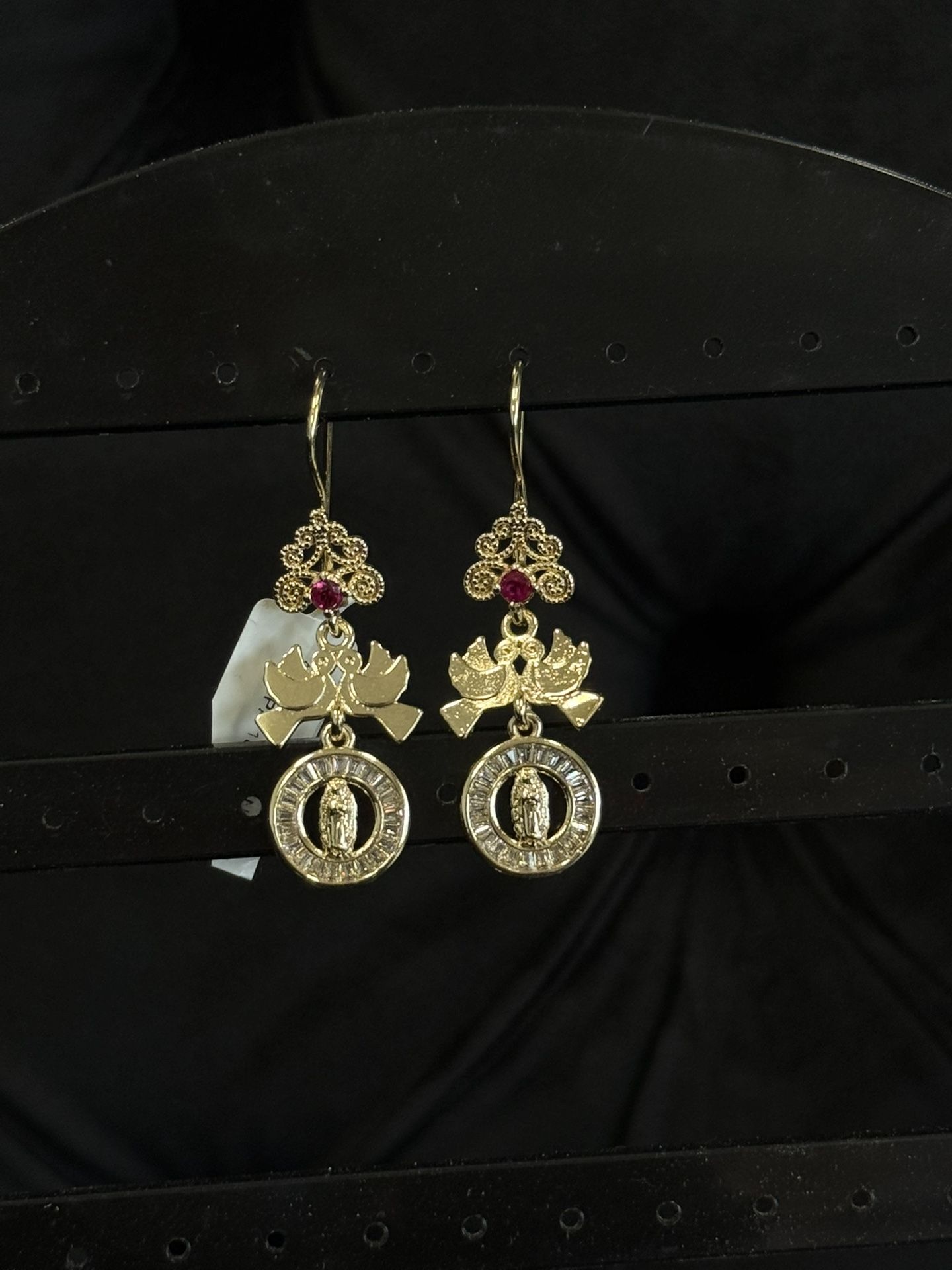 Hermosos aretes dorados con chapa de oro de 18k con la virgen