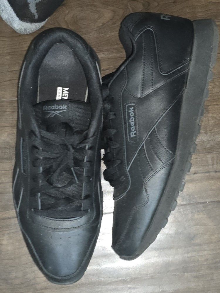 Like new All black leather classic Reeboks 11.5 only worn twice like new