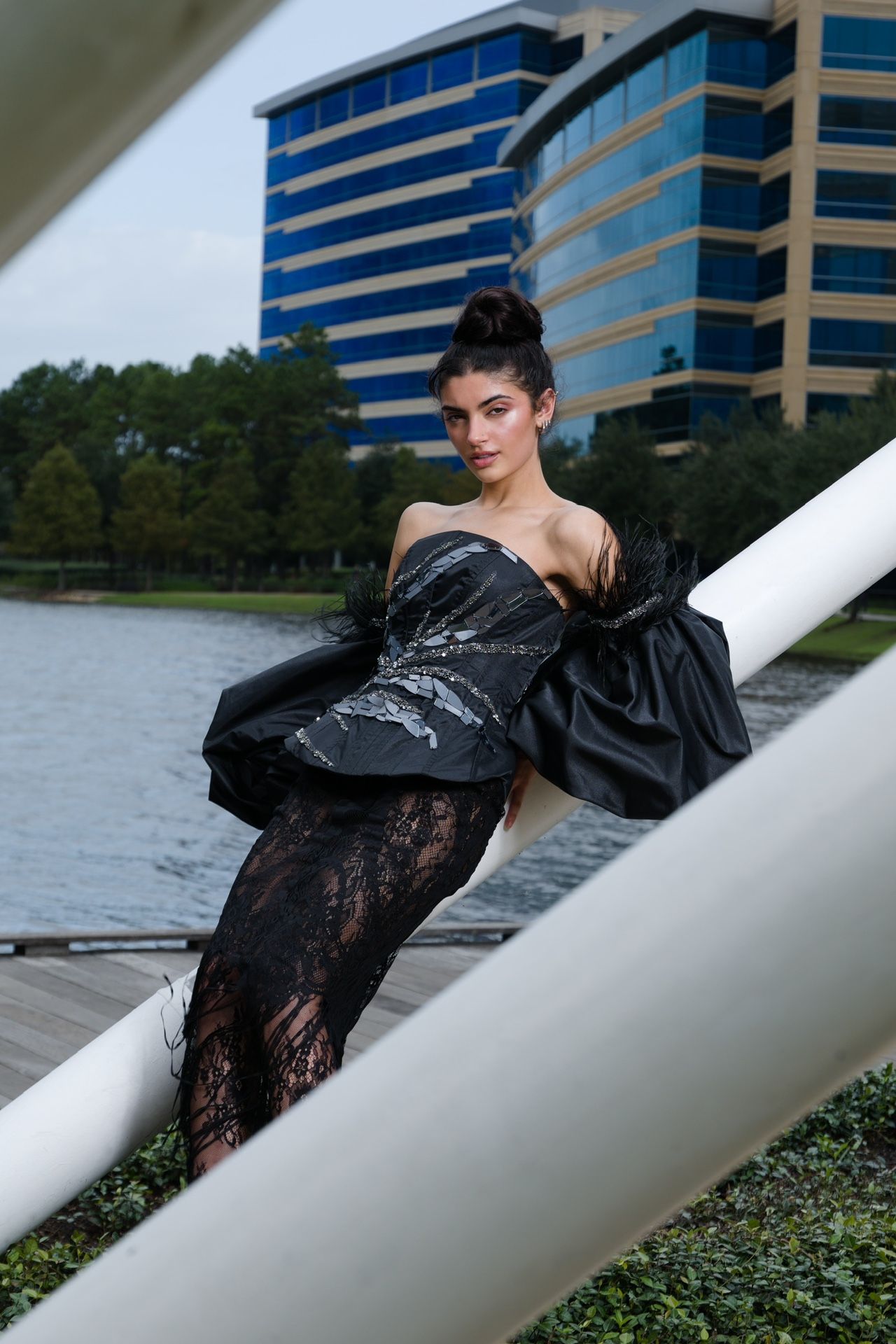 Beautiful black corset top in black lace skirt glass on corset perfect to snatch the body