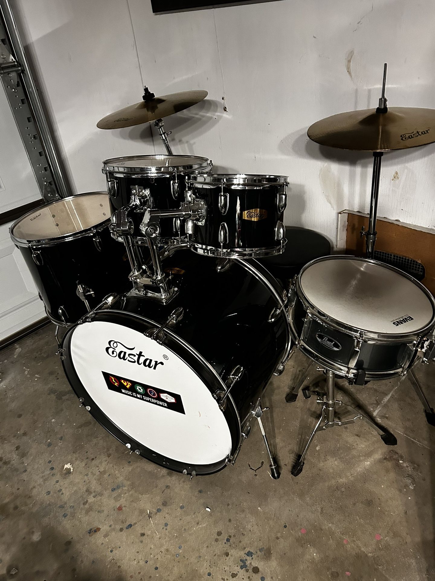 Drum Set Eastar 22 inch for Adults, 5 Piece Full Size Drum Kit Junior Beginner with Pedal Cymbals Stands Stool Includes Evan’s Snare Drum