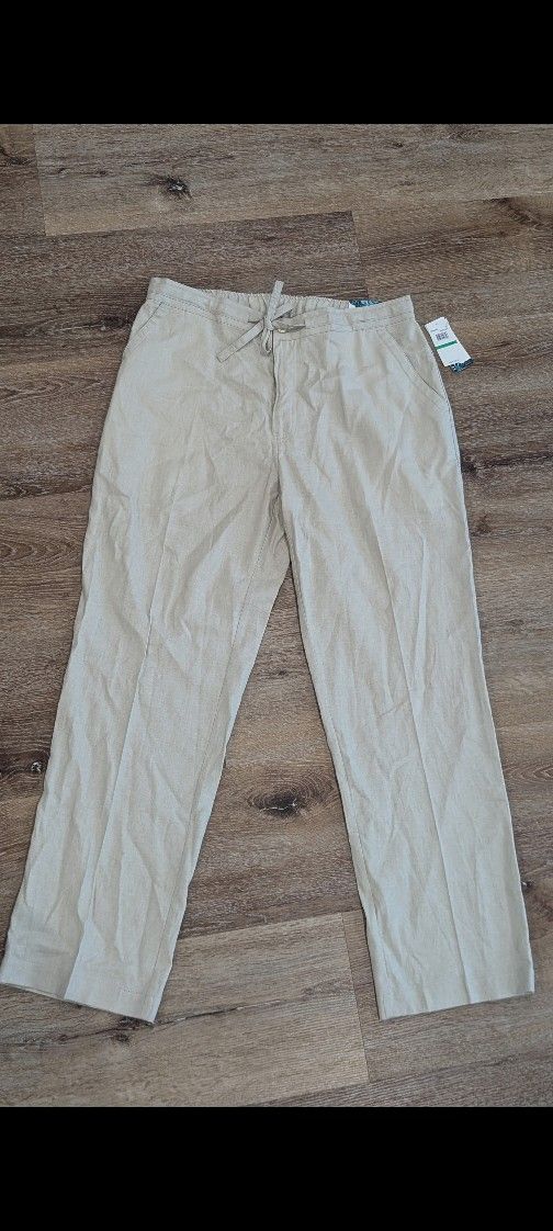 CUBAVERA Pants women L Linen-Blend Wide-Leg Straight Pockets