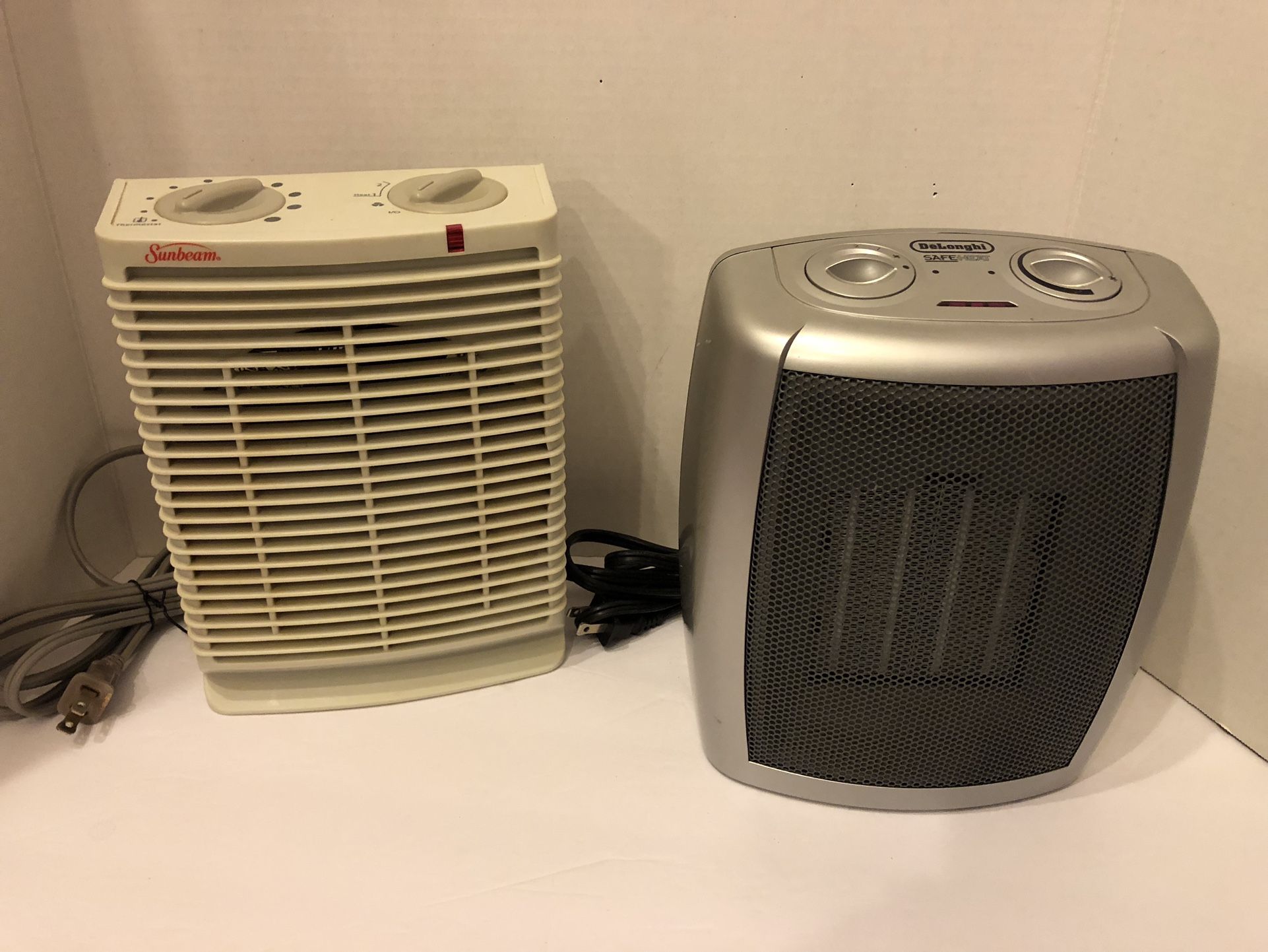 2 small electric heaters. Good for office or small space. Delonghi and Sunbeam brands.