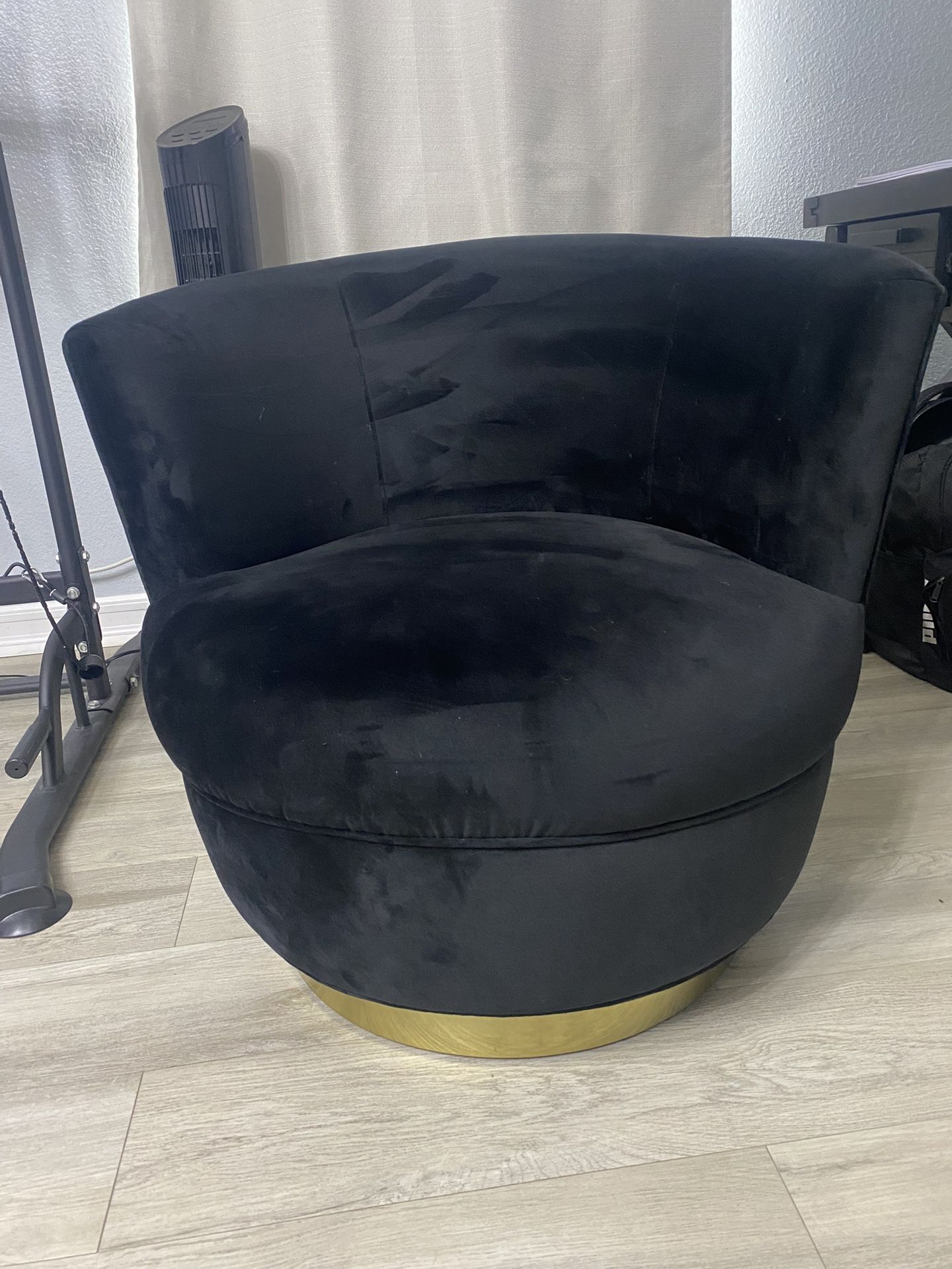 Modern black velvet 360 swivel accent chair for bedroom or living room.