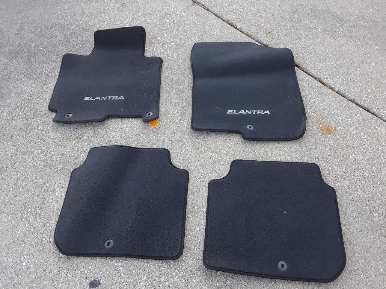 Hyundai Elantra Floor Mats, fits years 2014, 2015, 2016, Manufacturer Part No. 3XF14-AC300. Drivers side mat has the most wear, others like new. Price is FIRM, will meet for sale only at a Police Dept Safe Trade Spot. 7