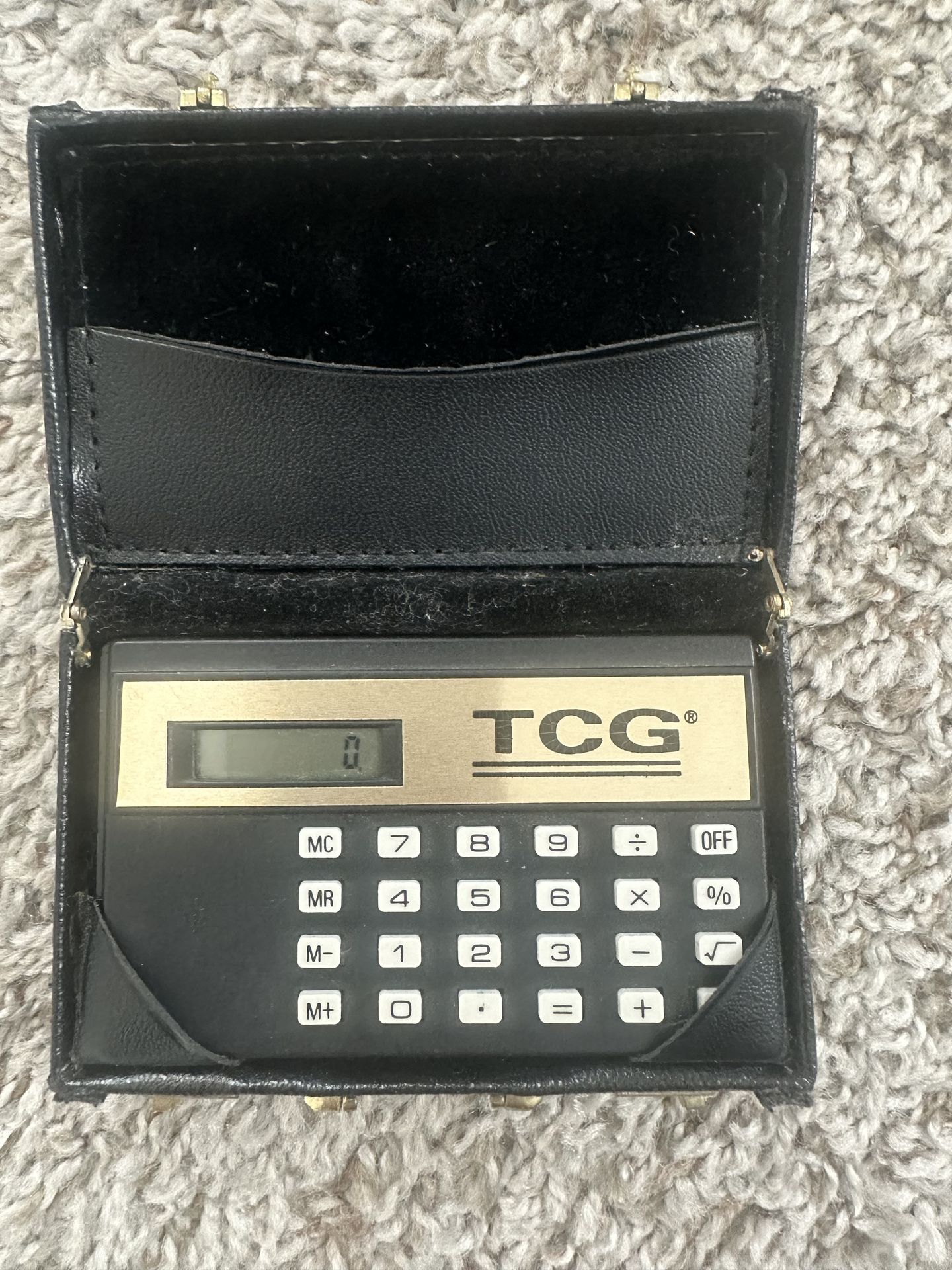 Vintage Miniature Leather Briefcase Salesman Sample Calculator Credit Card Holder New battery. Please refer to the pictures as to what you will be getting with this lot. AS IS. Please check my other listings. Thanks for looking.