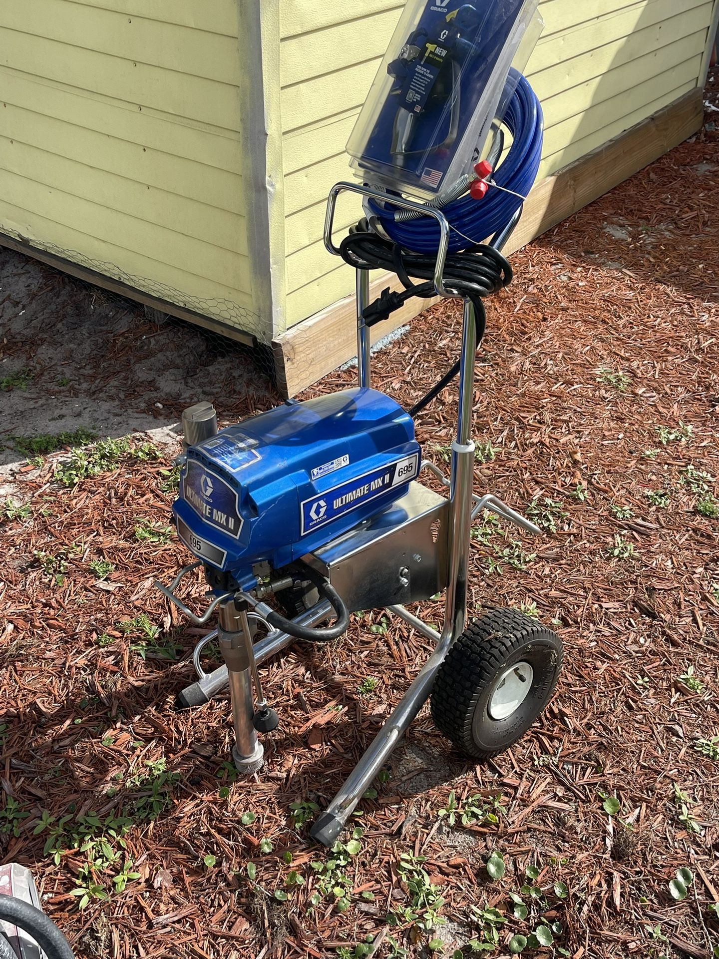 695 spray gun Bluetooth compatible. Used once monitor scratch on top. Comes with new hose and gun in package.
