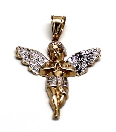 Mens 10K Yellow/White Gold Angel Pendant