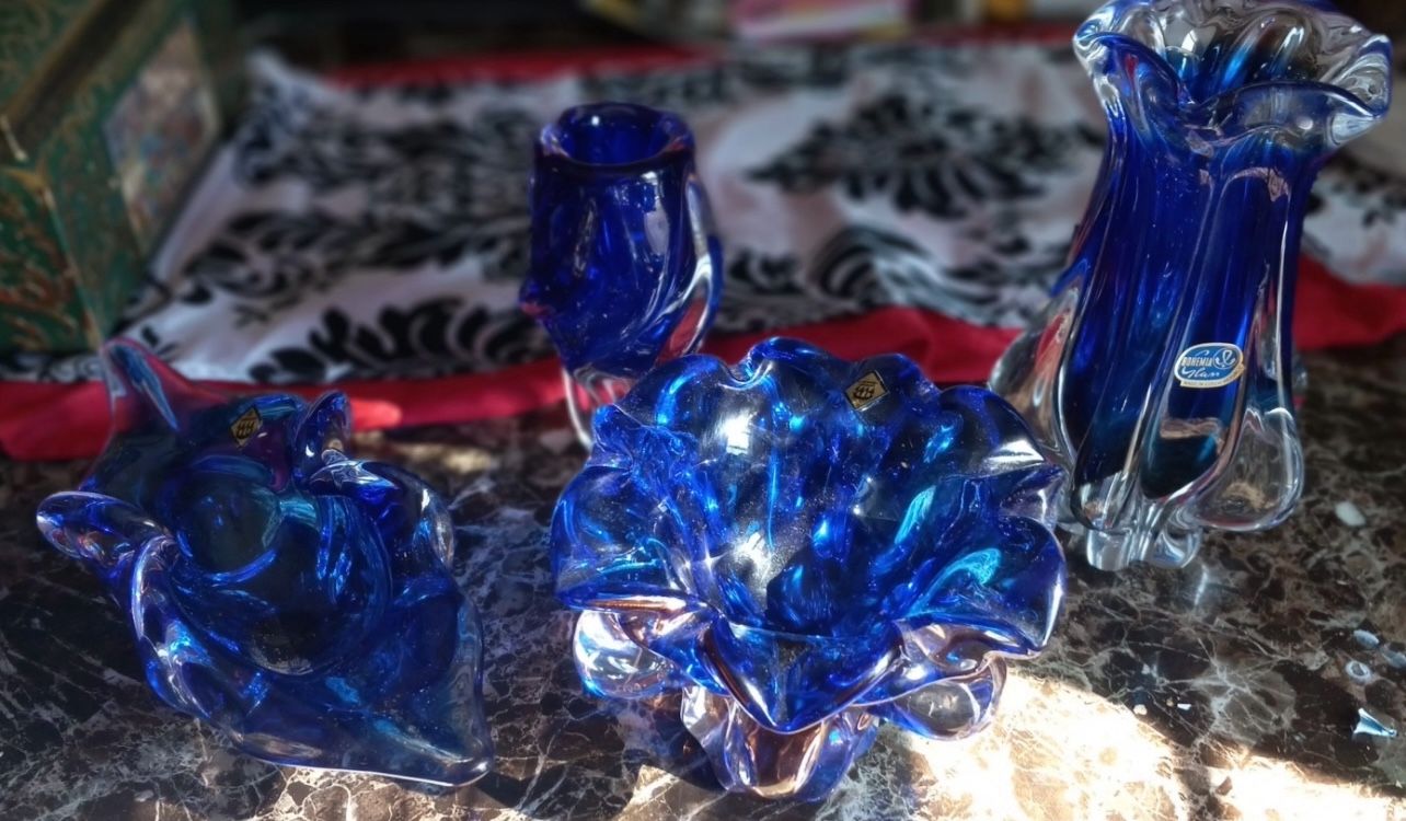 Designer glassworks Chribska Czech Republic Bohemia Glam • Chřibská was a glassworks artist in the Bohemia region (in what was Czechoslovakia) noted for mid-century art glass production. Vases and bowl collection of vintage glass. Comes with 4 pieces