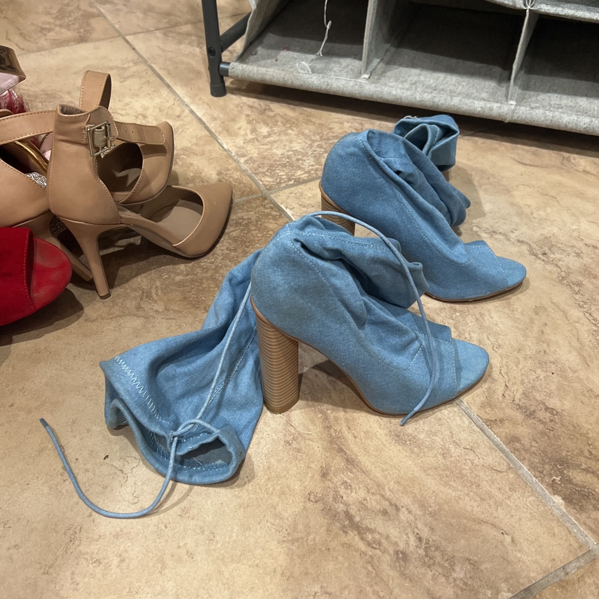 Stretchy Denim Blue Ankle High Heels
