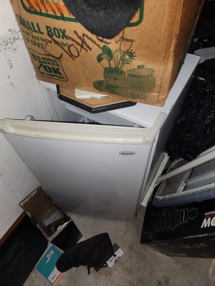 33 inch tall mini fridge has couple dents and dinks but works fine