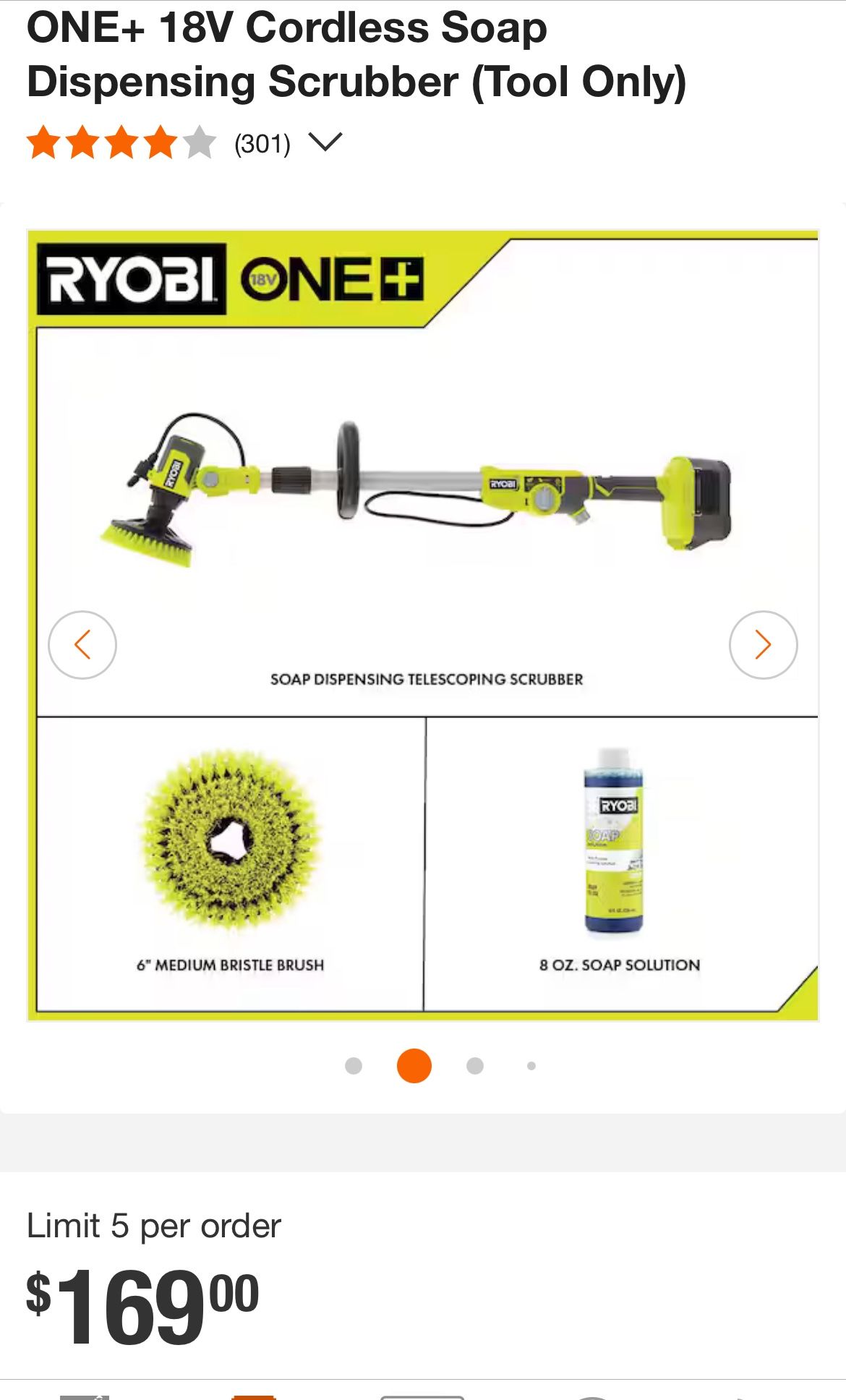 RYOBI ONE+ 18V Cordless Soap Dispensing Scrubber (Tool Only)
