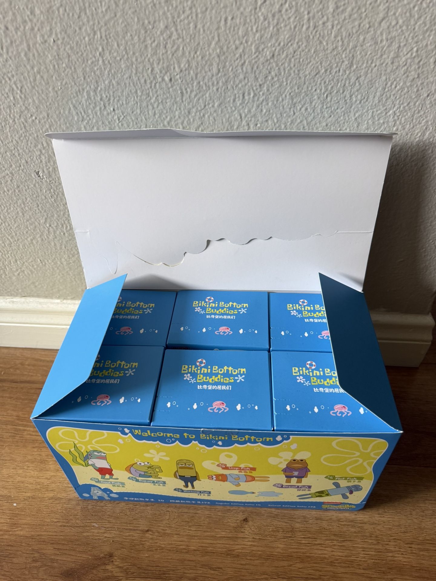 100% Authentic Bikini Bottom Buddies - Whimsical Plush. Personally bought to look for secret. Carefully Opened bottom to confirm card and sealed back, and unopened sealed packaging inside. No secret. Selling individually for $20. One left Available: ✅ Dazed fish QR code available for authentication. Authentication is allowed upon purchasing. Zelle or cash only
