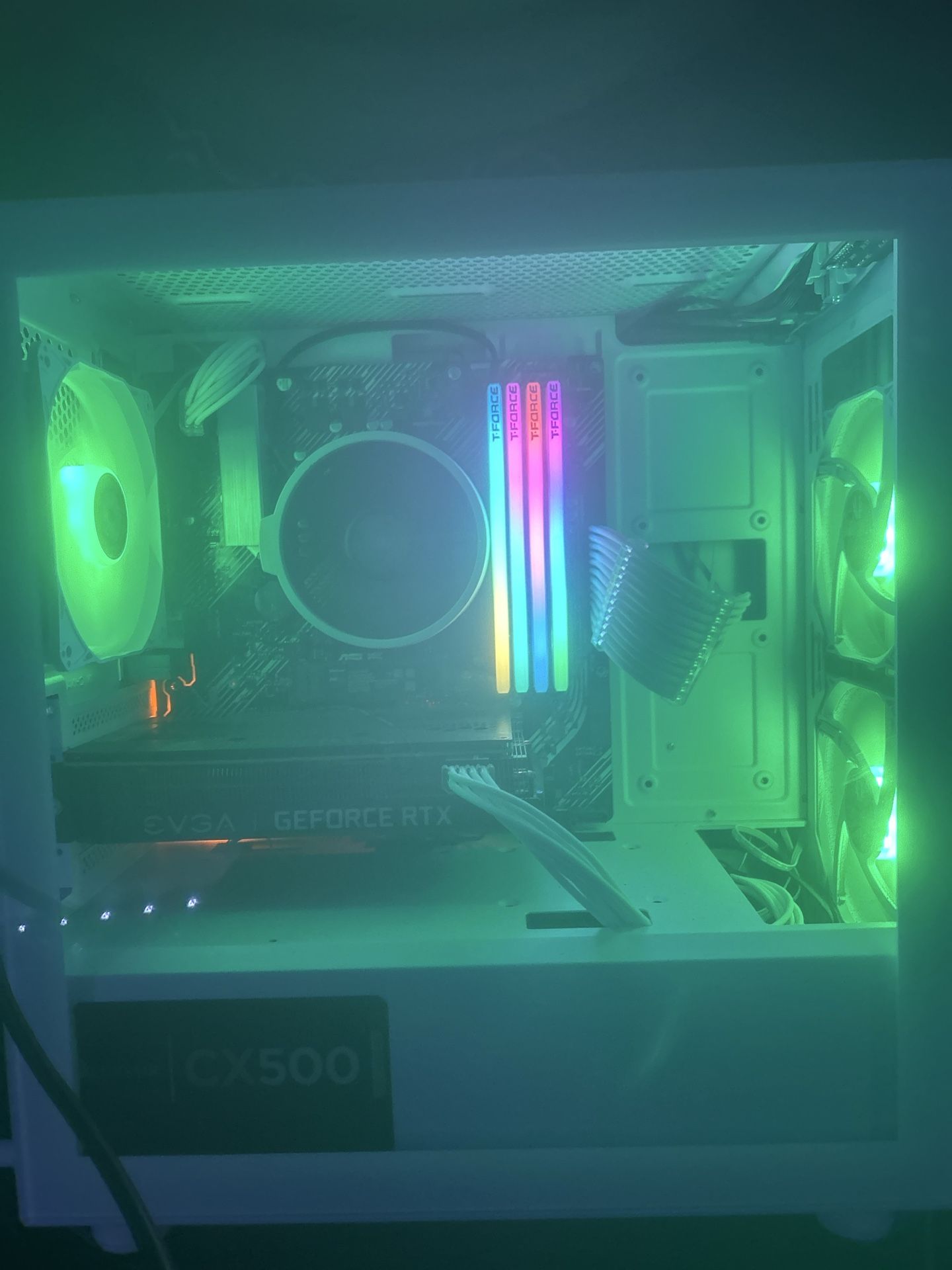 💠Aesthetic White / Clean Cable Build / Runs ANY Modern Game Smoothly Selling my clean desktop gaming PC — white build with RGB lighting, fast boot, and extremely clean wiring. Perfect for gaming, school, streaming, editing, or workstation use. ⸻ 💻 Specs: • AMD Ryzen 5 3600 (6-Core) • NVIDIA RTX 3060 12GB (EVGA) • 32GB RGB T-Force DDR4 Memory • 1TB Samsung 990 EVO NVMe SSD • RGB Fans, White Case, Quiet Performance • Windows 10 Pro ⸻ 🎮 Included Gaming Gear: ✔ RGB Gaming Keyboard ✔ Razer Gaming Mouse Plug in → Power on → Play. Runs Warzone, Fortnite, Apex, GTA, Valorant, Minecraft, FiveM, and more with ease. ⸻ 💸 Price: $1,200 OBO 💬 Serious buyers only — open to fair offers.