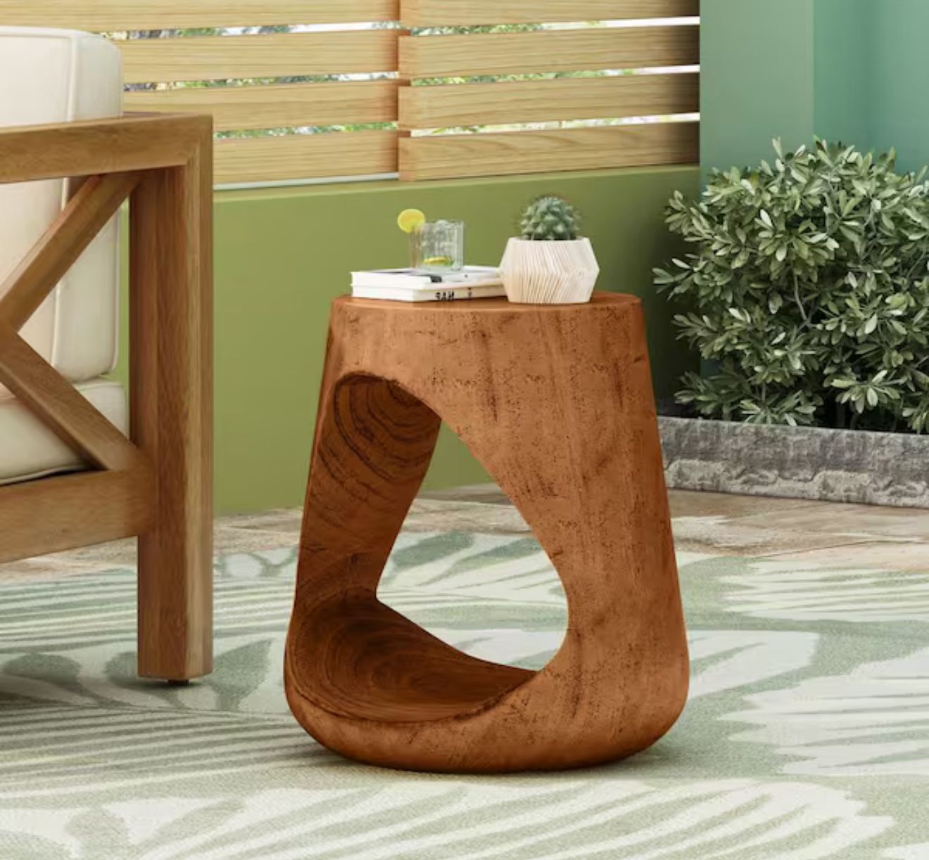 Poise Outdoor Patio Hollow Side Table with Wood-like Texture, Antique Brown, MGO