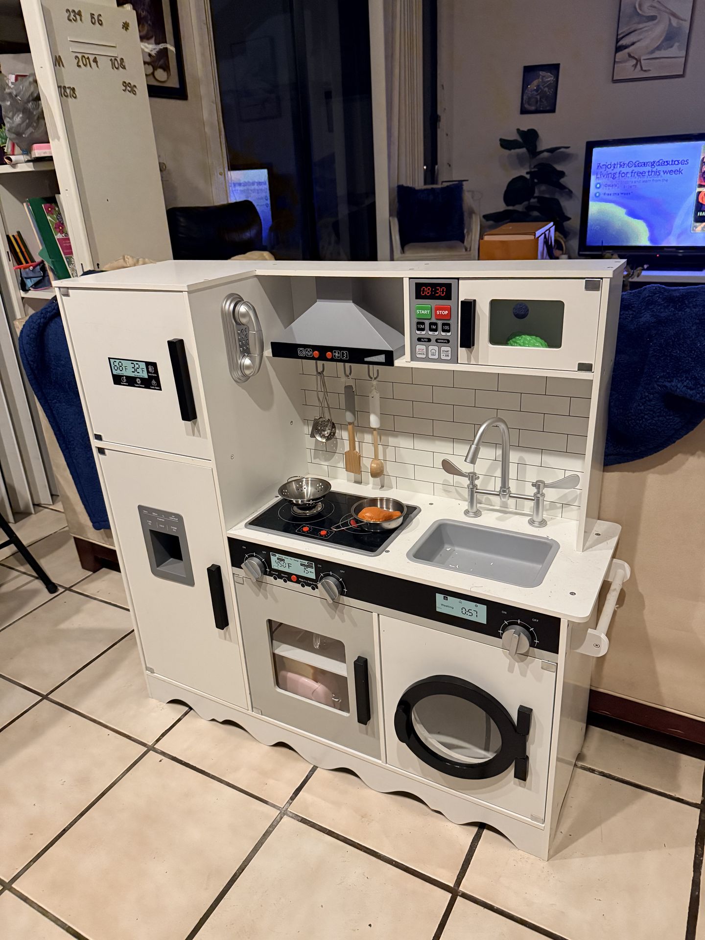 My niece barely used it and took such care of it! it comes with pans and accessories and food and everything in the kitchen works!!