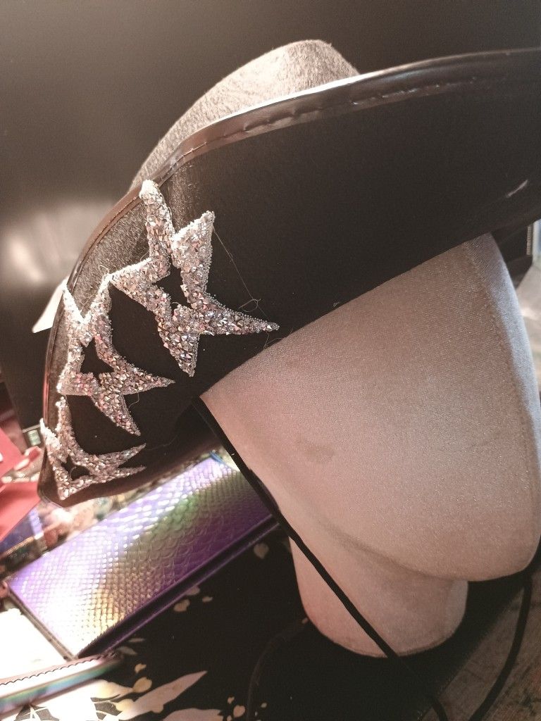 Halloween Black Cowboy Hat With Three Stars On Each Side And Black Heart-shaped Sunglasses