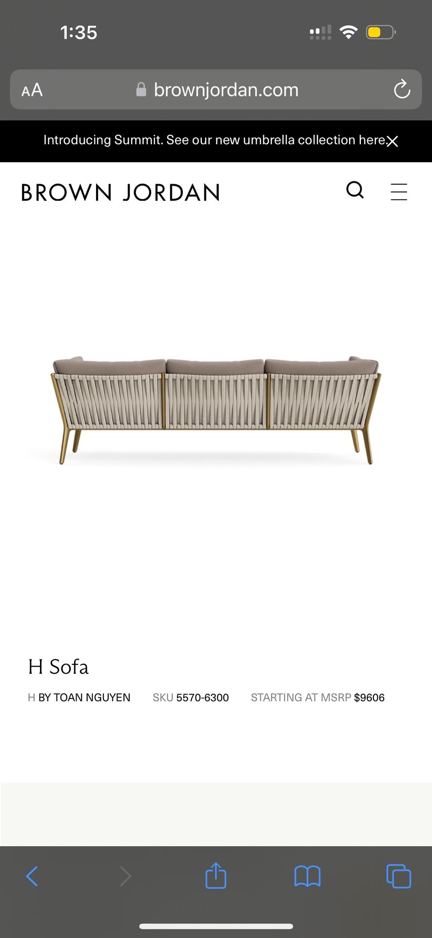 Brown Jordan H sofa by designer Toan Nguyen , -Pillows and cushion not included Nguyen utilizes 3-inch diameter rope create a dramatic, sculptural effect against its streamlined aluminum frames. Price for this sofa starts at $9000