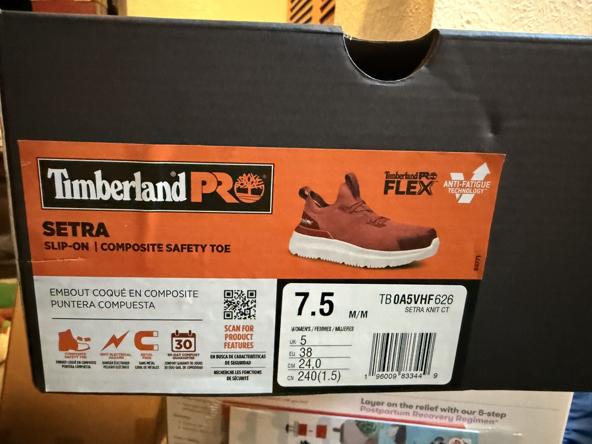 Timberland women’s Size 7 1/2 Burgundy Composite safety Toe shoe. Slip on Never Worn