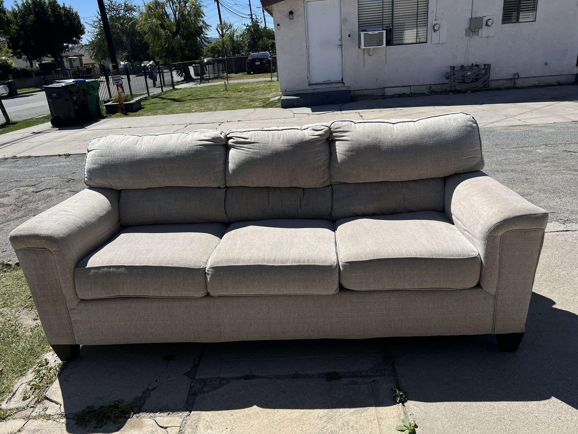 Three seater couch used just moved and won’t be needing anymore comes with couch covers as well Need gone asap must come pick up Open to negotiate