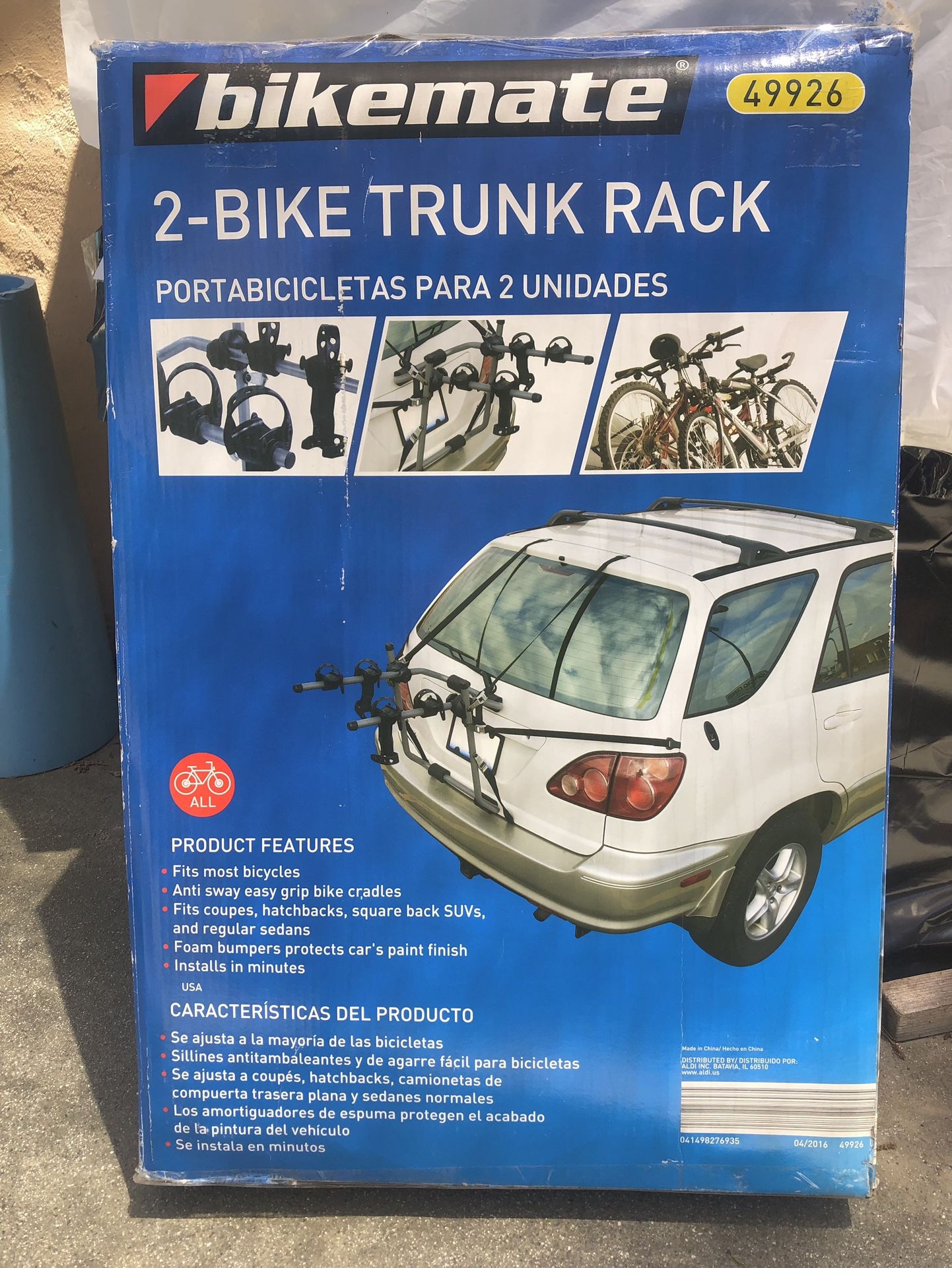 Bikemate carrier. New in box. Unused, never assembled. Will meet buyer in Banning, Beaumont, Redlands area. Cash only