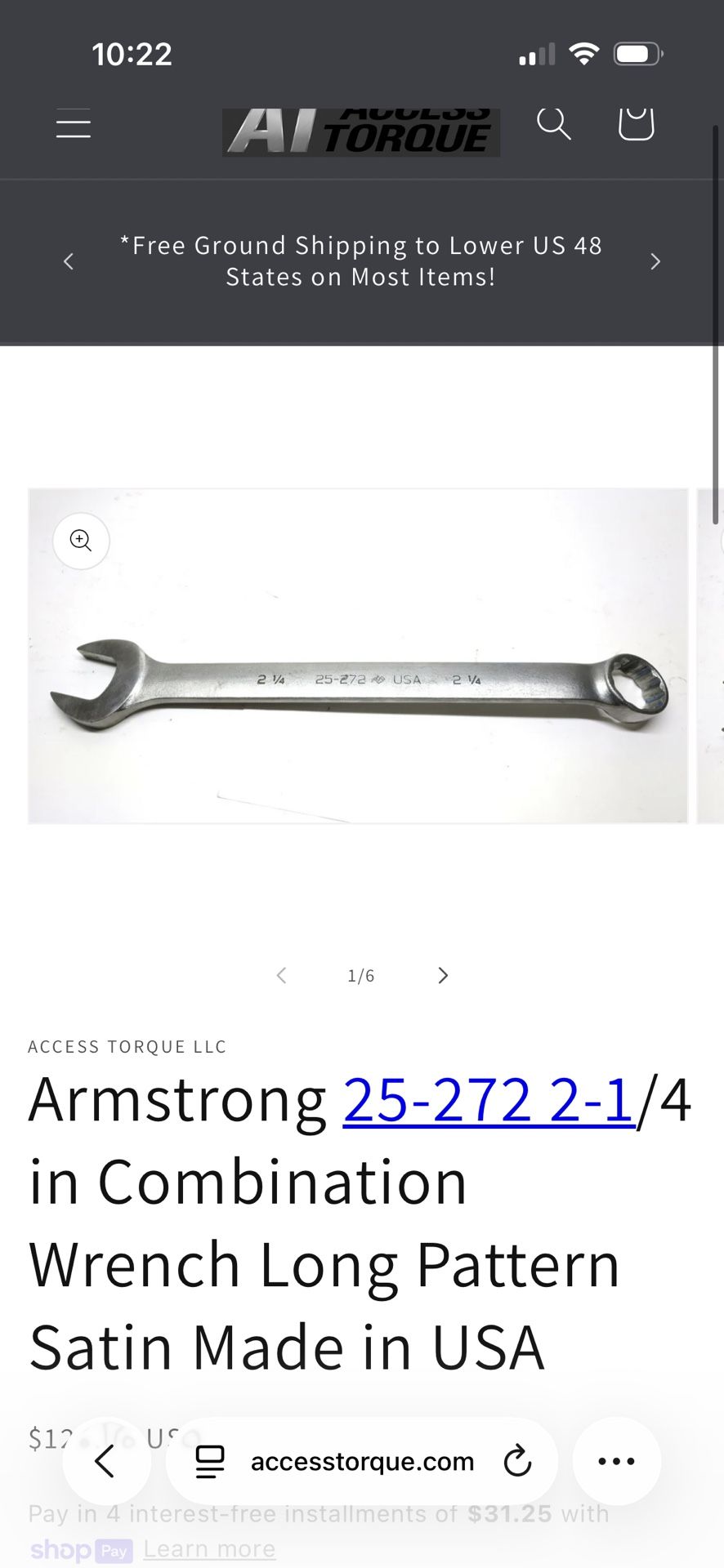 Armstrong 25-272 2 1/4 Combination Wrench