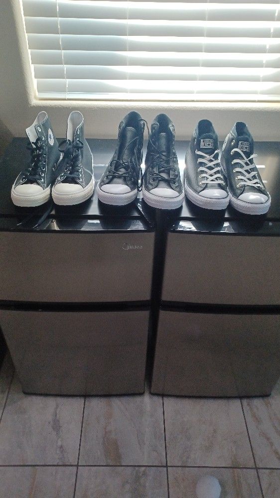 3 pairs of men's converse shoes. One pair black canvas size 10 and 2 pairs of black leather size 10.5. All pairs brand new and never worn.