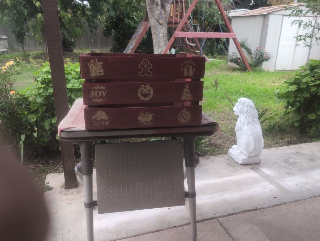 H - 11 1/2 " W - 12 1/2 " L - 19 3/4 " They are decorated on both sides and buffed out as well. Can do different colors too, I have plenty, $15 each