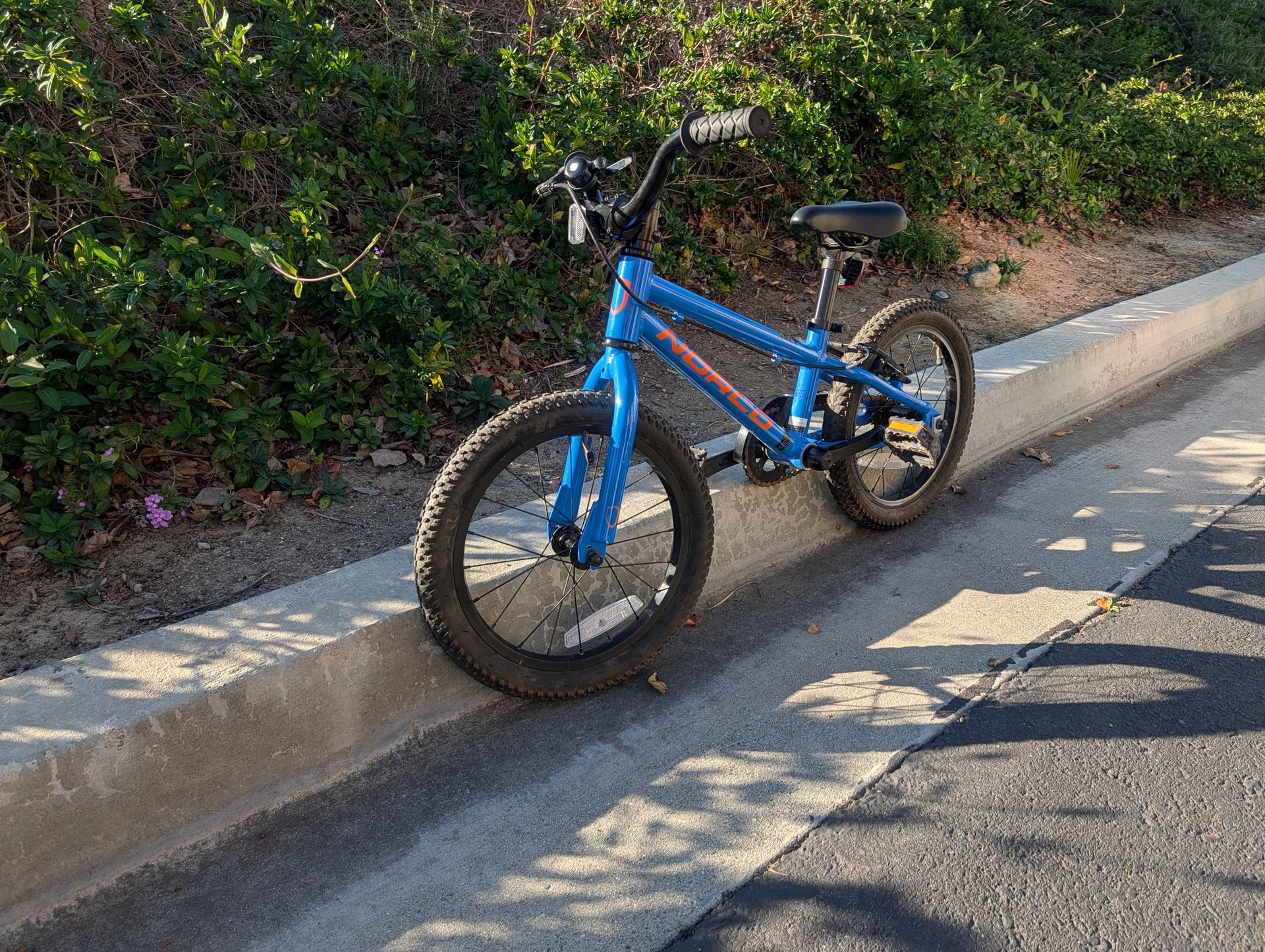 This is a gently used kid's bike, perfect for a future mountain biker! It has a lightweight aluminum frame; both a traditional back pedal brake and rear hand brake; and premium components. It's recommended for ages 4 to 5, roughly 3'4" to 3'10" in height. See here for a more detailed description. (https://offerup.com/redirect/?o=aHR0cHM6Ly93d3cudGhlYmFja2NvdW50cnkuY29tLzIwMjEtbm9yY28tY29hc3Rlci0xNi5odG1s)