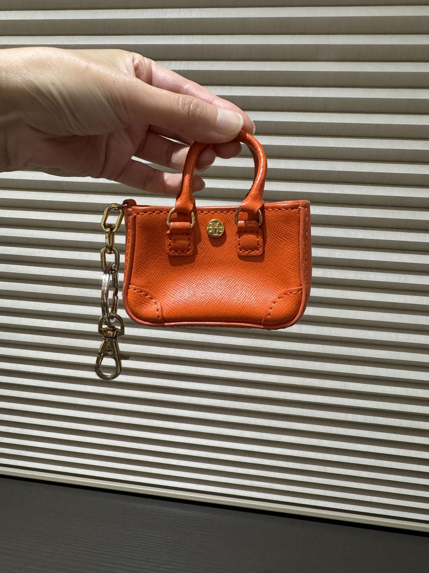 Tory Burch classic signature orange leather mini tote key fob chain charm