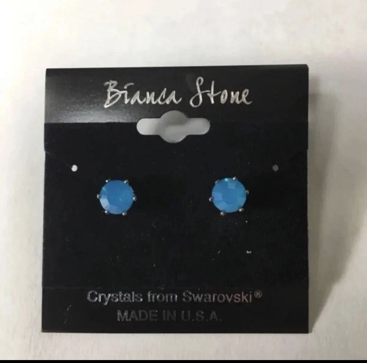 Gorgeous Stud Earrings Genuine Swarovski elements crystals Caribbean blue opal Crystal color Sterling silver plated 6mm in diameter, 6 prong setting 1 CTW each so total carat weight of 2 CTW made in usa Message me if you want to buy multiple items from my store Note - the earrings are not swarovski brand. Only the crystals are genuine swarovski elements