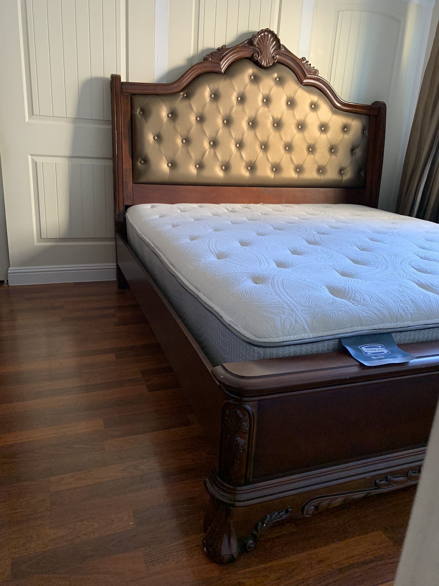 king bedroom set Including bed frame. 1 set Bedside tables, dressing table with mirror and quality mattress. Excellent condition.