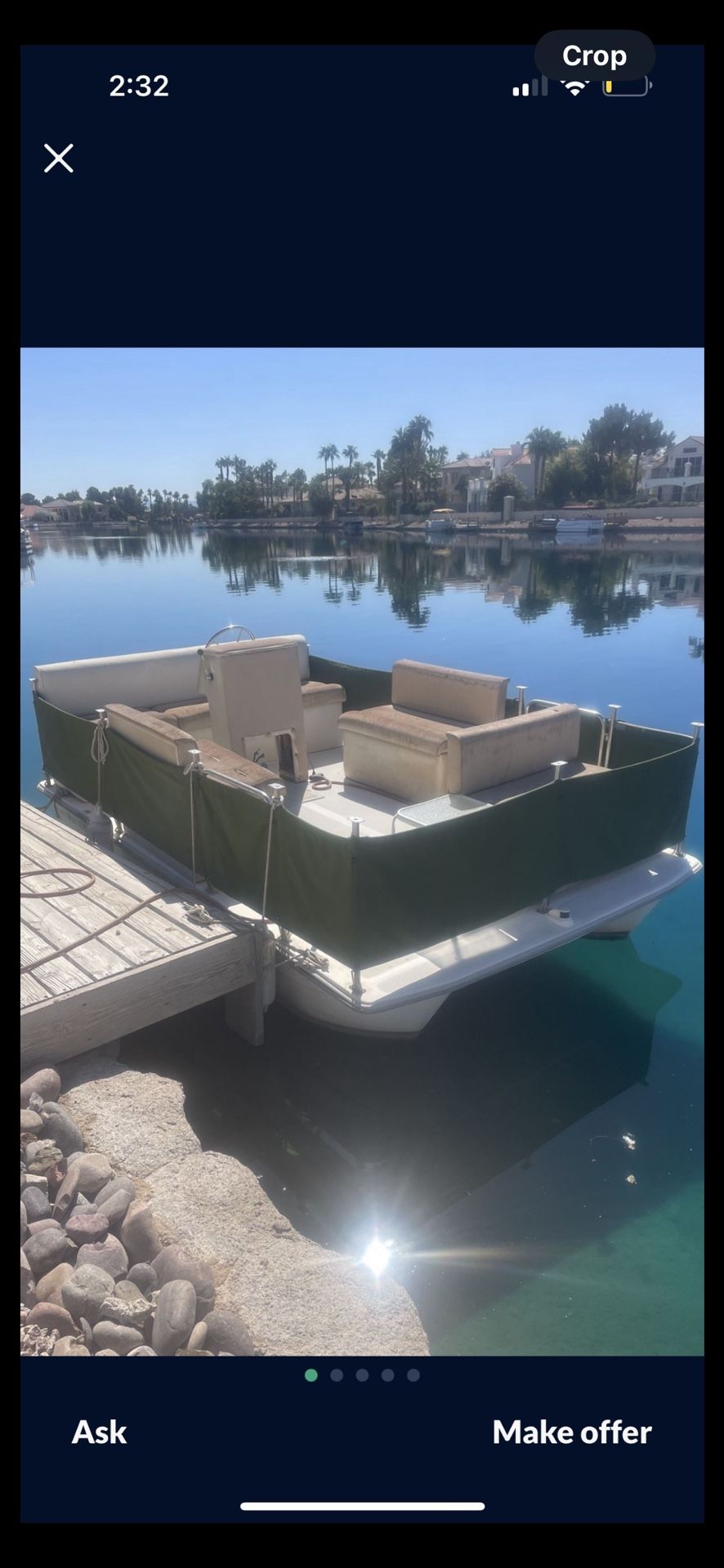 Awesome 12 foot by 8 foot ElectraCraft.. Great Pontoon boat from private “Desert Shore all Electric private lake neighborhood. Also have a Trailer with new Rims and Tires. 🛞 these cost $4-5k and are perfect for cruising or bass fishing w buddies. $1500 open to reasonable trades .