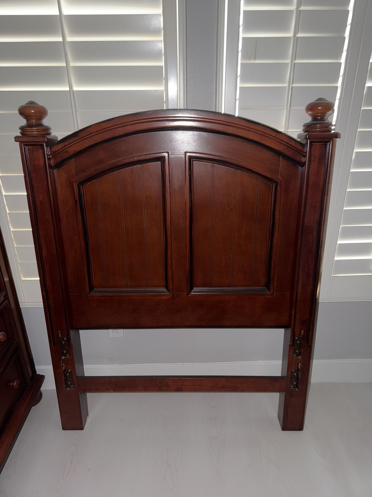 Comes with headboard, slats, and bed rails. Okay condition, may need rescrewing on bed rails Pickup only