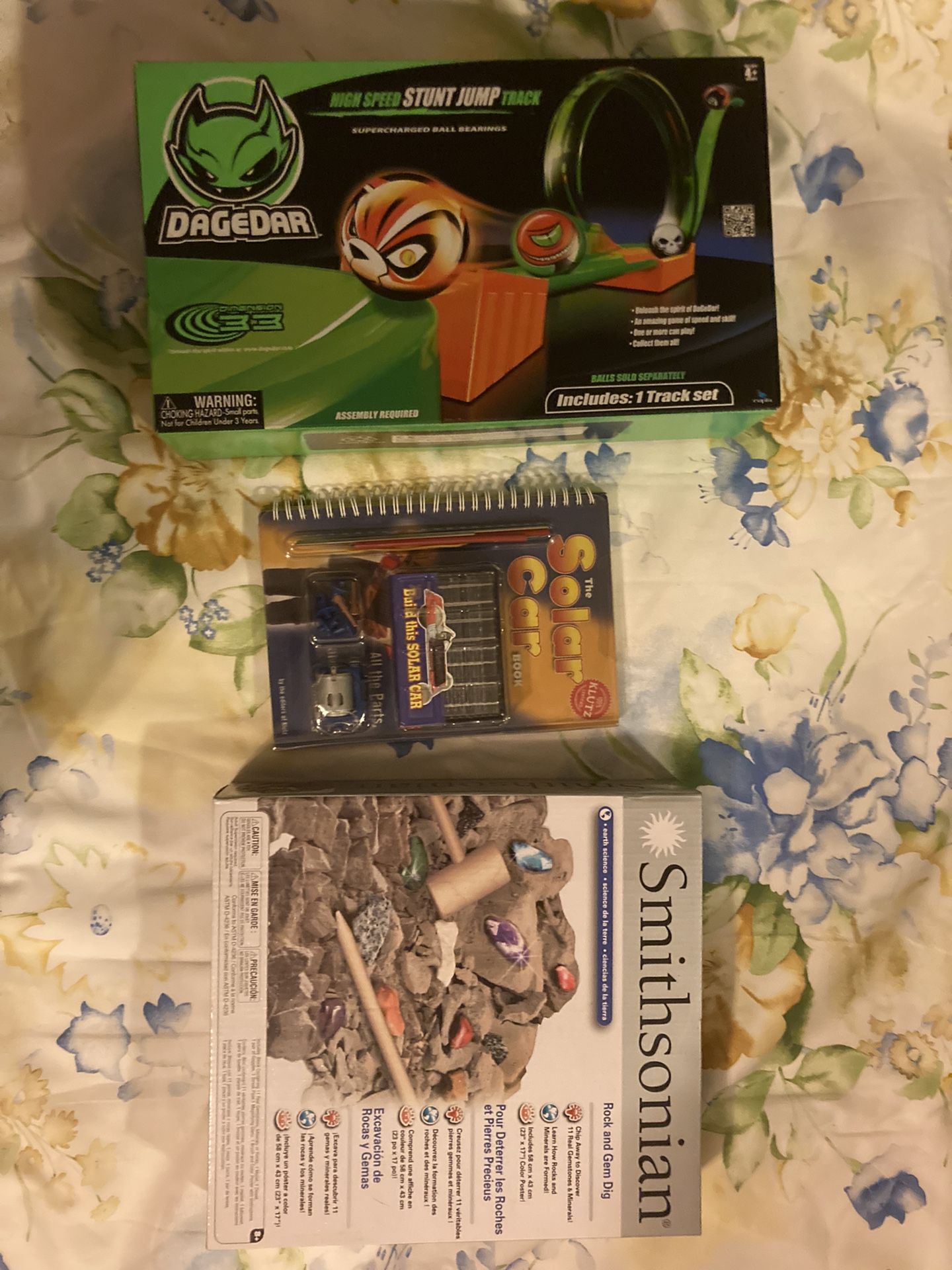Dagedar track set Klutz solar car Smithsonian rock and gem dig All new
